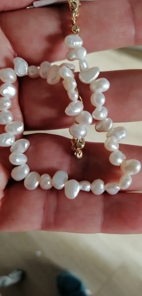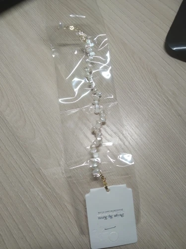 Браслет как на фото, металлическая цепочка, на которой крепится жемчужина от застёжкиз очень уж тоненькая, но пока держится. Вещь очень изящная и носить нужно аккуратно. Не из тех украшений, которые можно носить, не снимая, и спать в них, и ванну принимать!