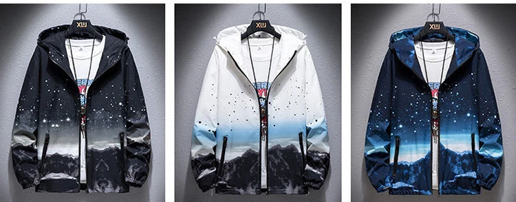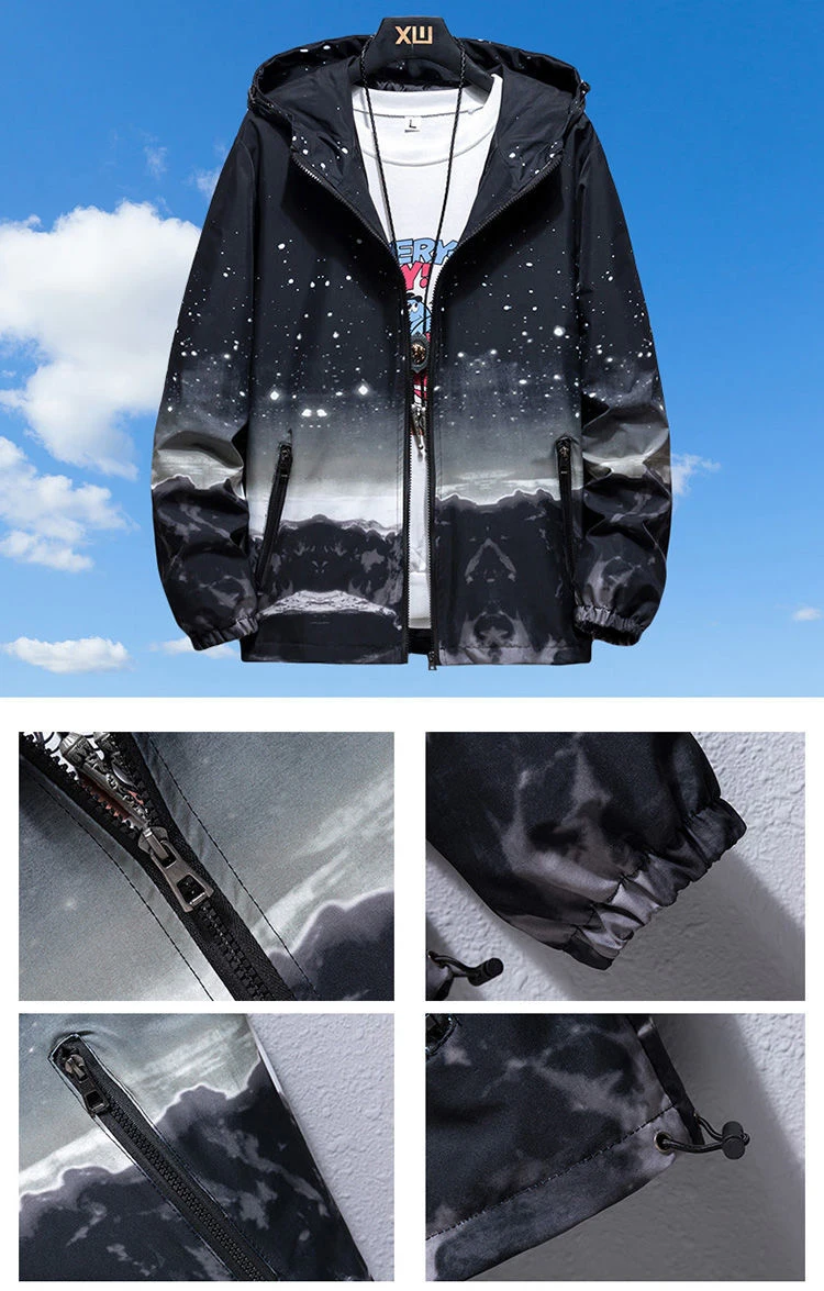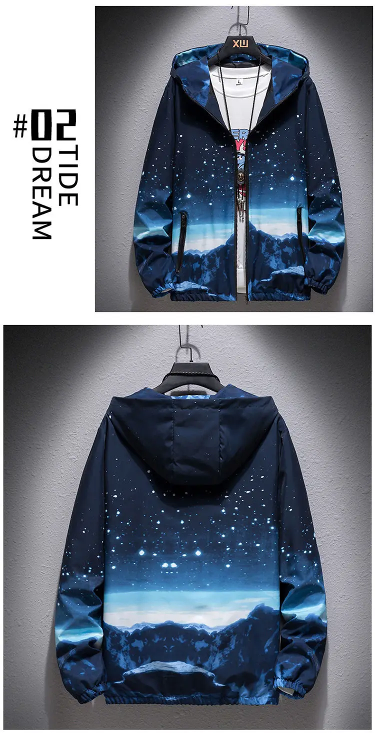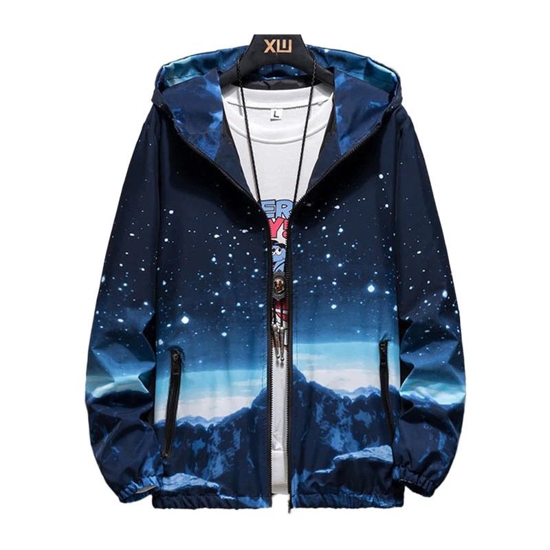 Женская ветровка на молнии, легкая Повседневная куртка с капюшоном и принтом ночного неба, весна 2022
