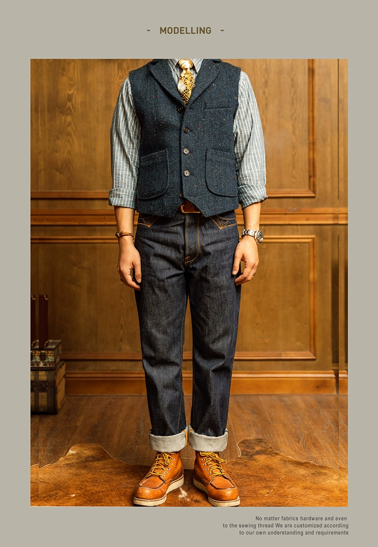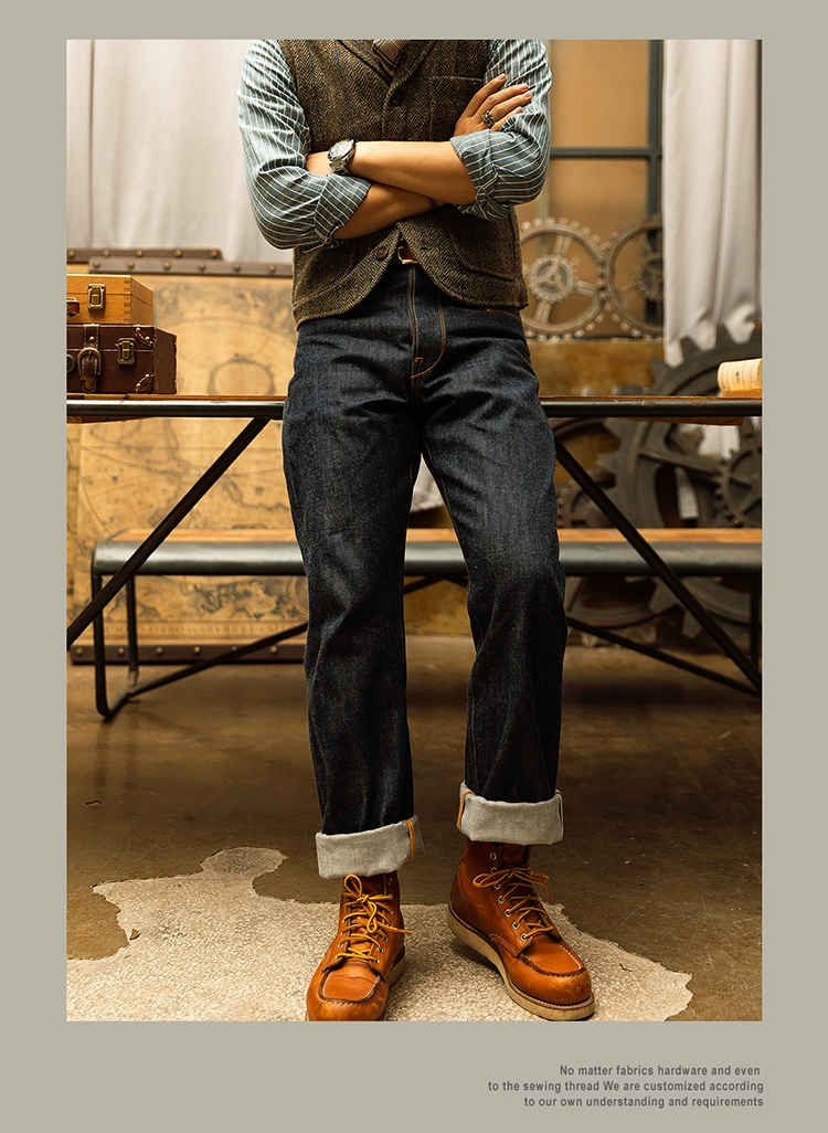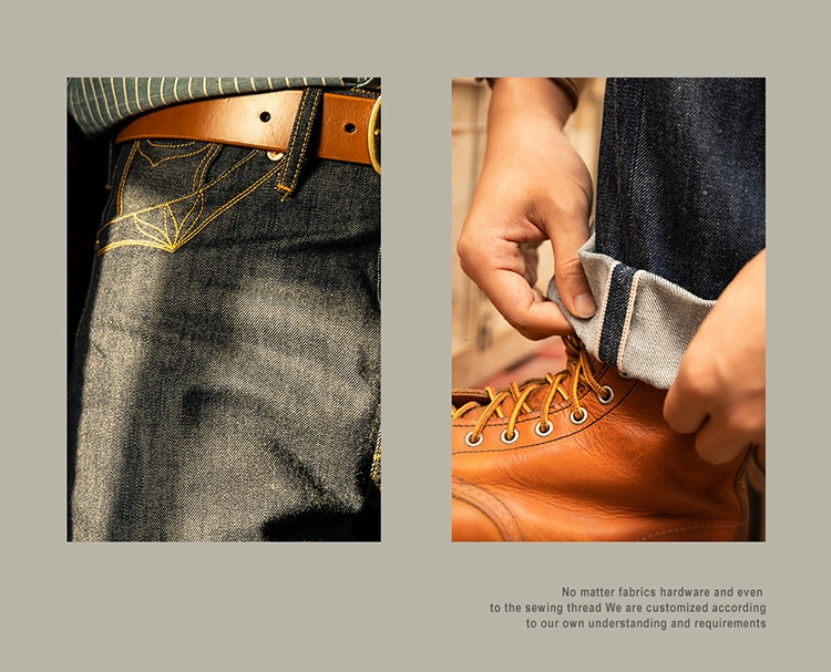 У нас есть джинсовая фабрикаДоступны услуги Oem / odmОптовая продажа/Прямая поставка приветствуетсяВысокая посадкаХлопчатобумажная ткань 14 унцийНе оставляет следов/не стирается100% Индиго окрашенныйНашивка из коровьей кожиYKK медная кнопка и заклепкаПрямой кройПодол с цепочкойРифленые швыЛатунная пряжкаПуговица FlyНа модели 182 см и 75 кг, в размере 33