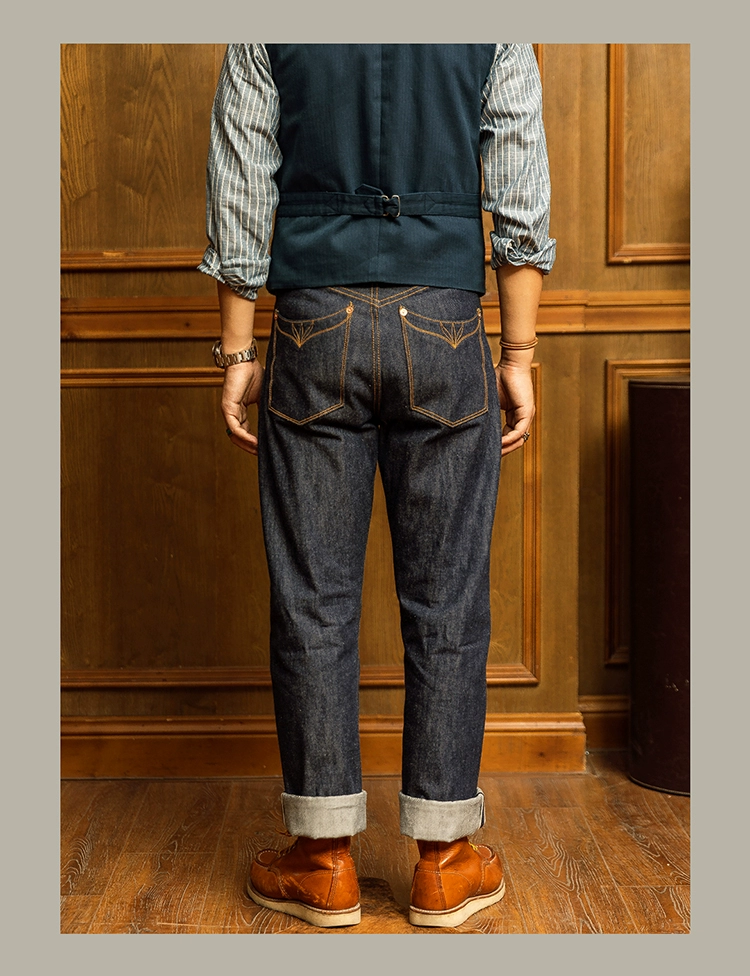 350 Цветочные сшитые джинсы 14oz Selvedge Denim Мужская одежда для ...