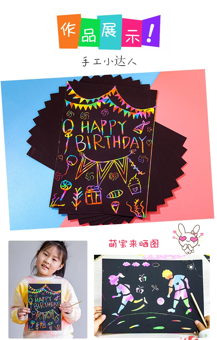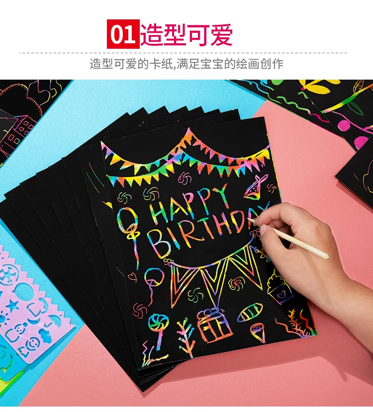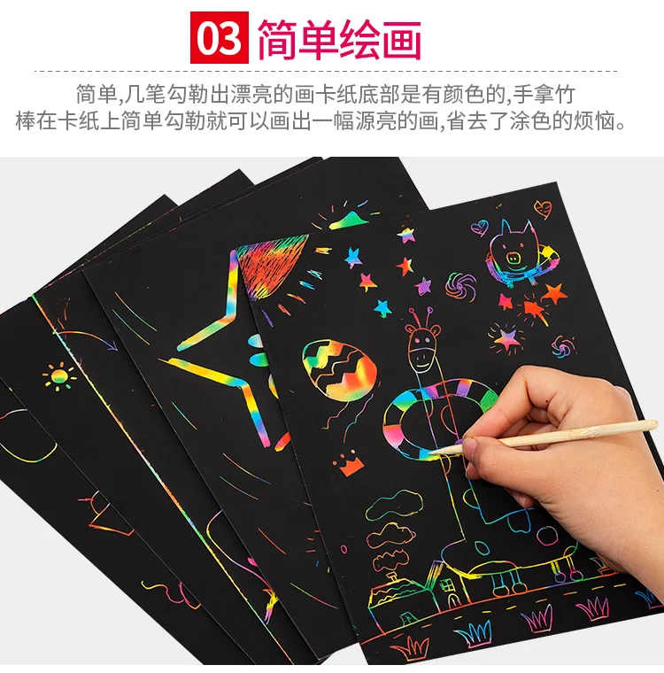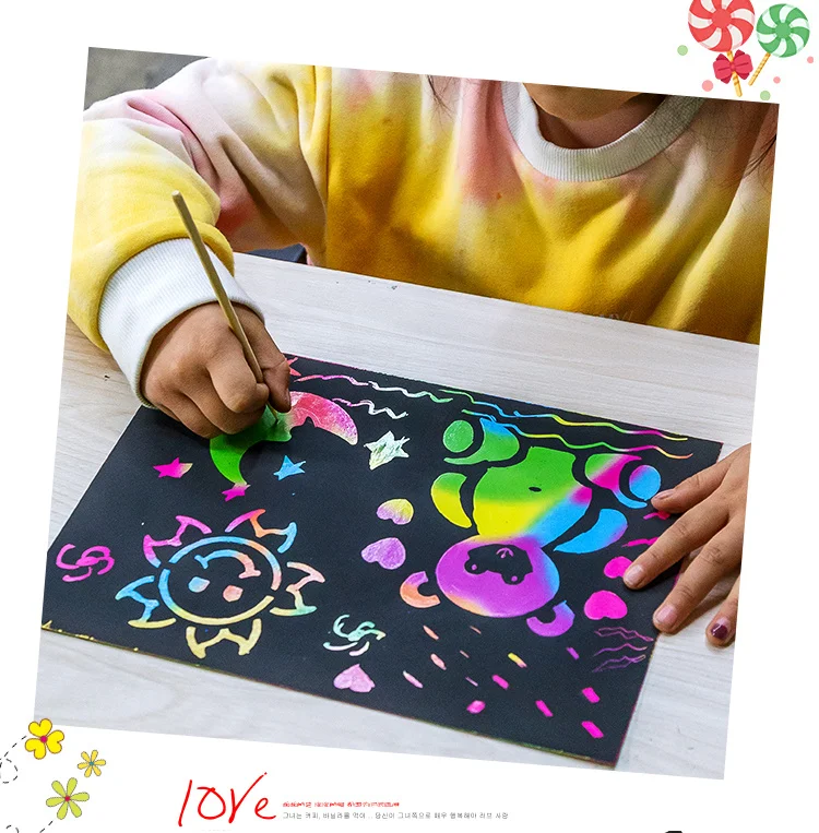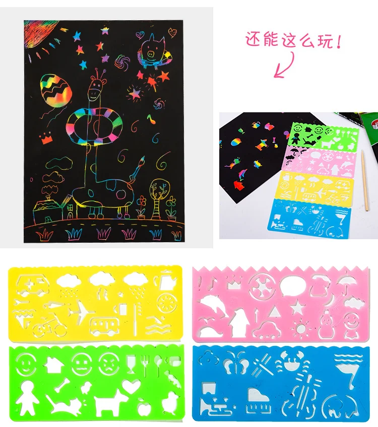 -Название продукта: волшебная Радужная цветная бумага для скретч арта набор карт с трафарет для граффити доска для рисования палка DIY художественная живопись развивающие игрушки подарок