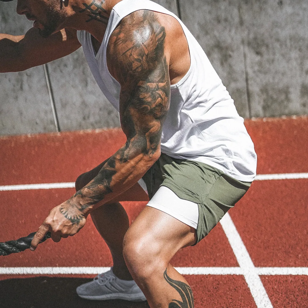 Мужские шорты для бега 2-в-1 ДЛЯ БЕГА МОДНЫЕ Фитнес Спортивные быст...