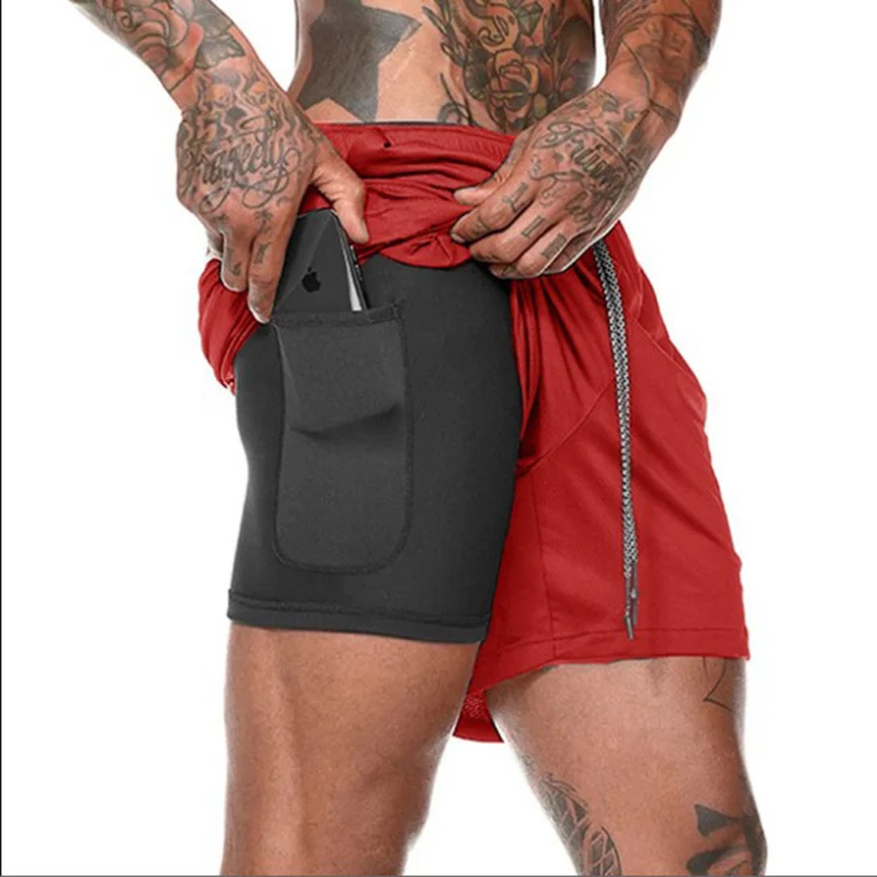 Шорты мужские спортивные быстросохнущие для бега и фитнеса, 2 в 1