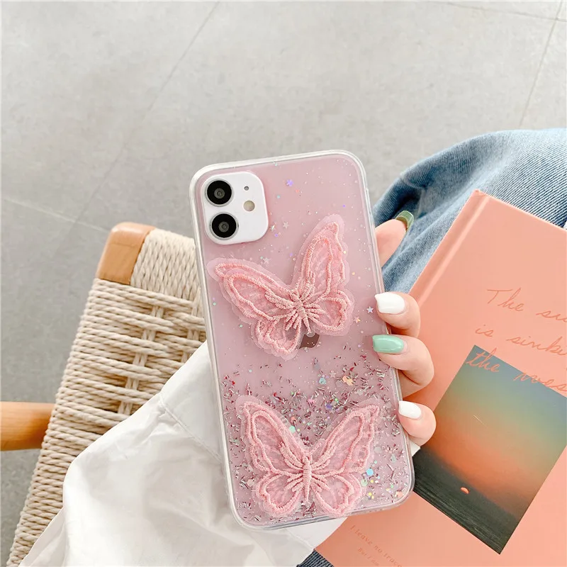 Блестящий Прозрачный мягкий чехол со звездами и бриллиантами и бабо...