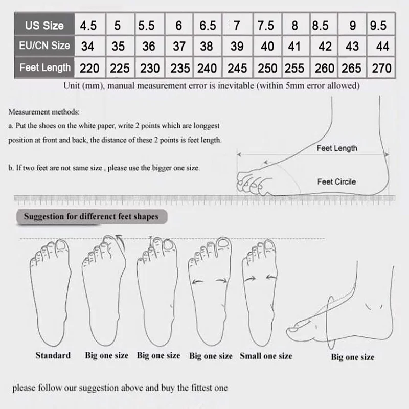 Тщательно Измерьте длину вашей стопы и выберите размер, исходя из длины стопы. Если есть какие-либо проблемы с размером, пожалуйста, укажите длину вашей стопы на странице заказа, спасибо