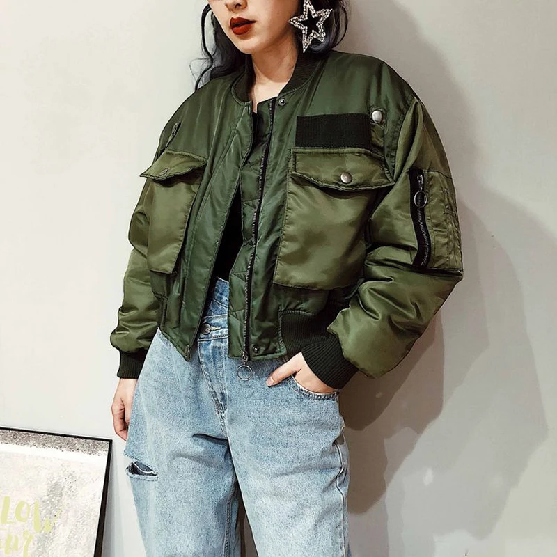 Женская куртка-бомбер на молнии, однотонная короткая бейсбольная куртка, Повседневная Свободная верхняя одежда, осень-зима 2020