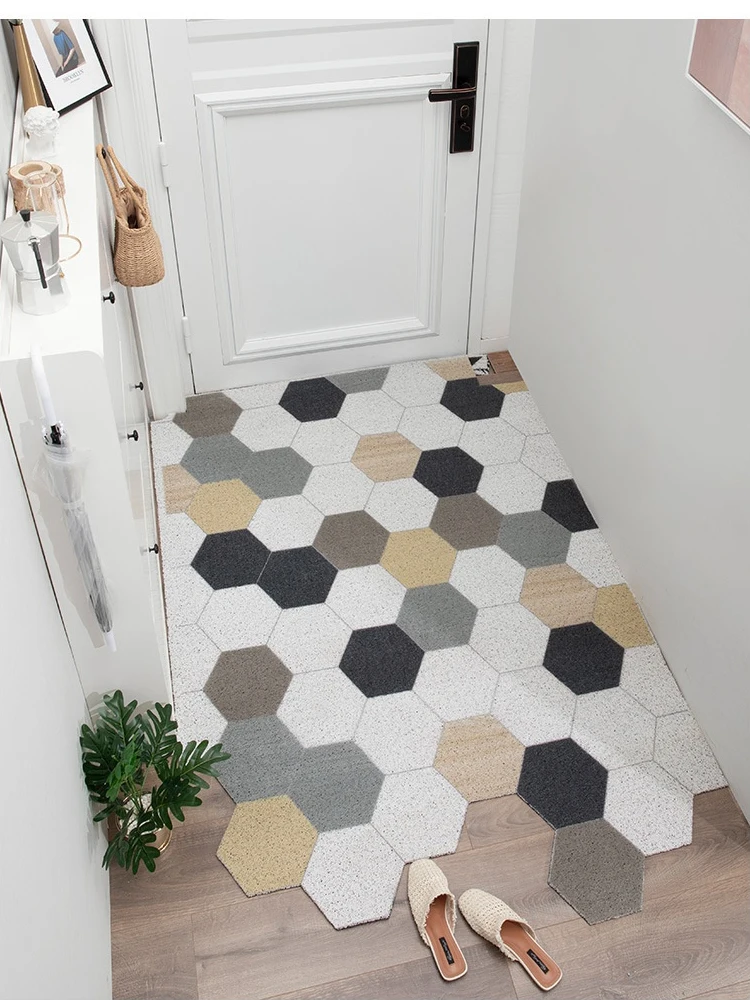 Коврик для прихожей с шелковой петлей, входной шестигранный безразм...