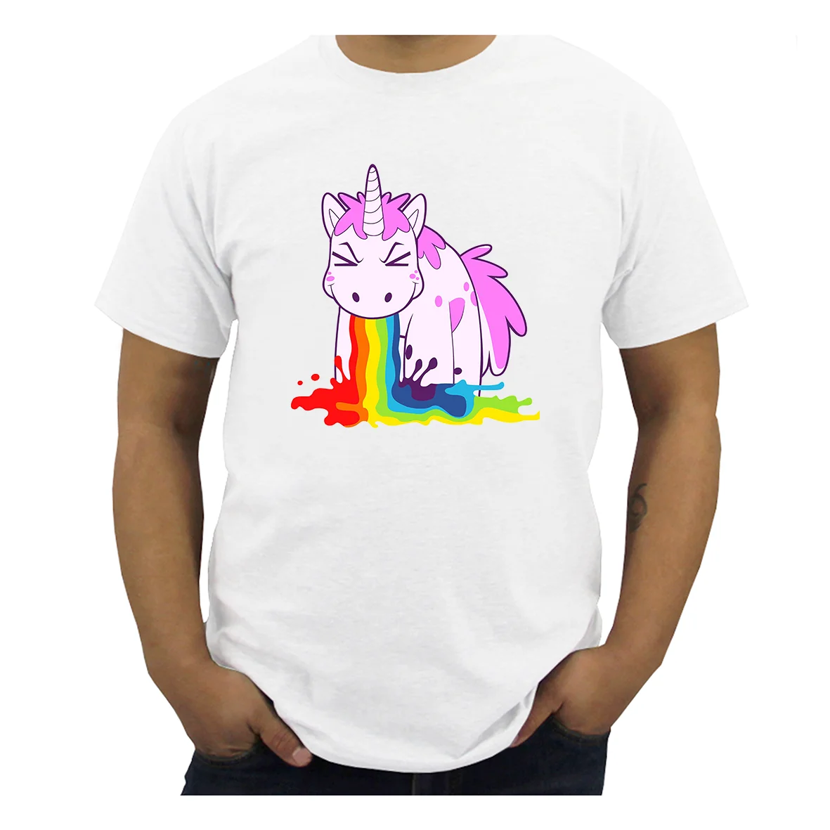 Футболка мужская с круглым вырезом, смешной принт единорога и рвоты, модал, мультяшный топ с коротким рукавом, повседневная одежда, уличная одежда, на лето