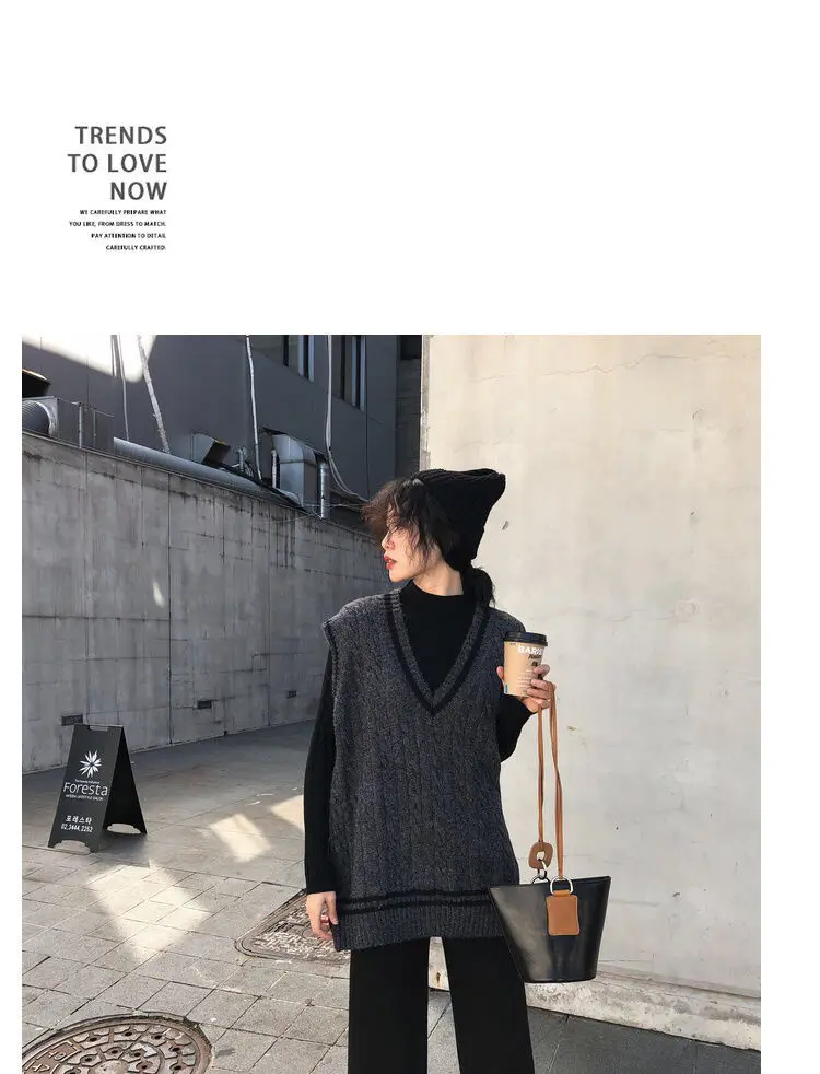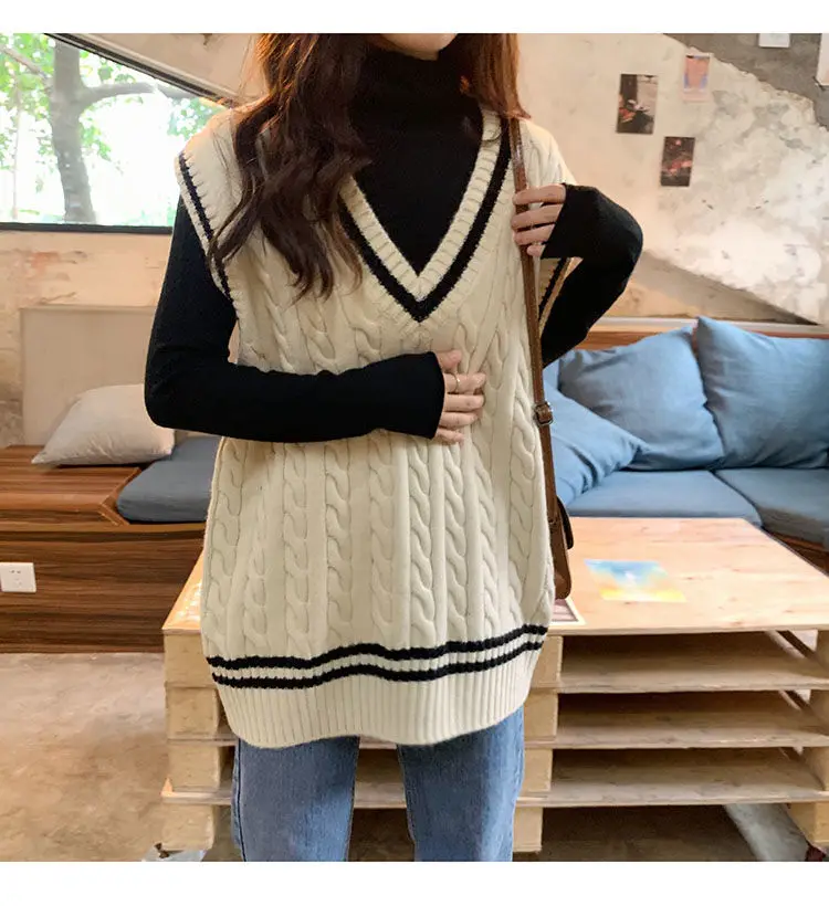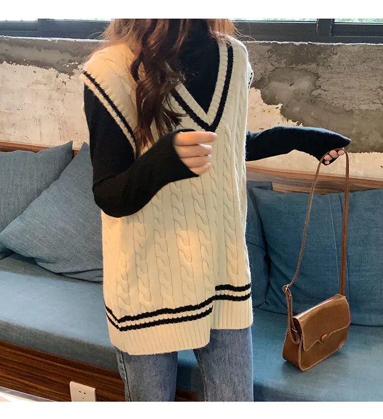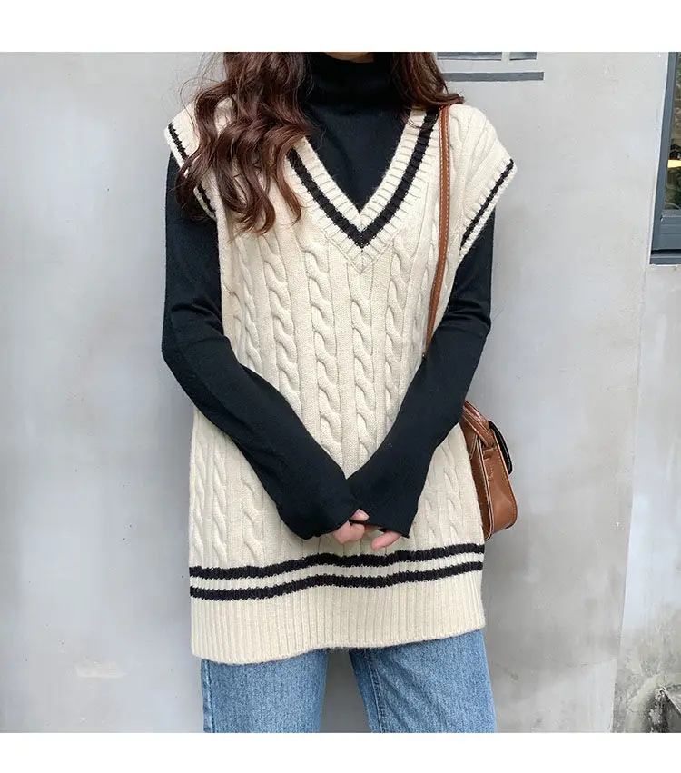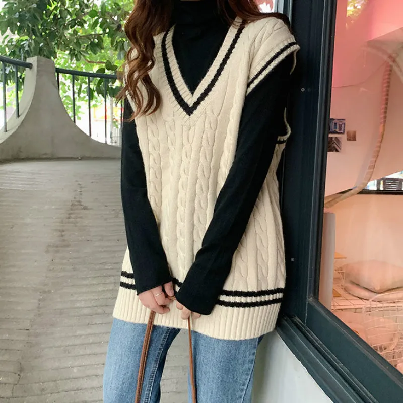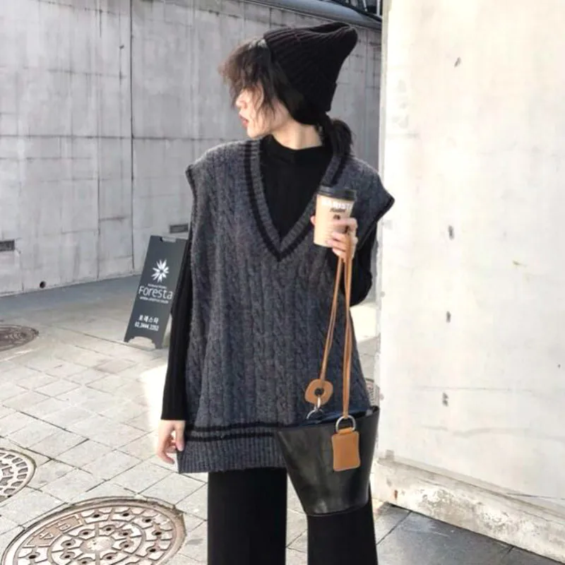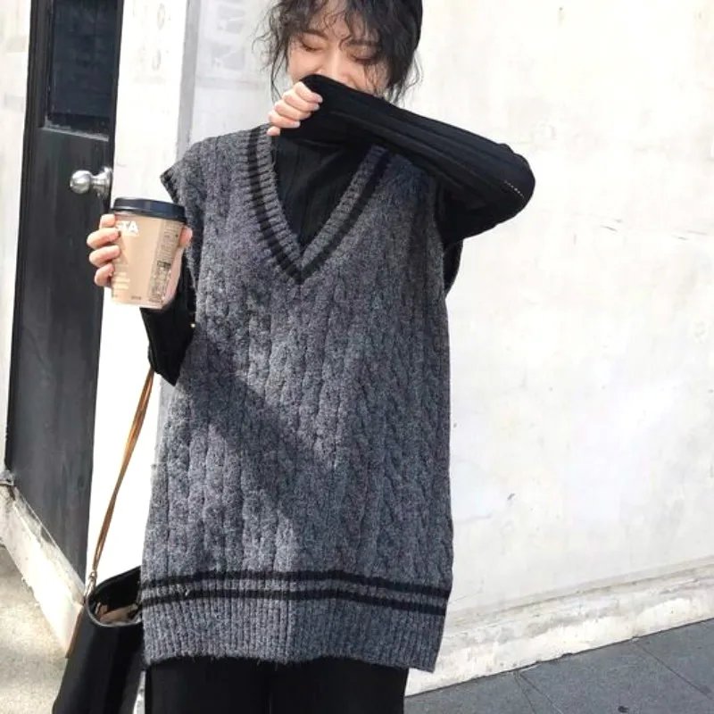 Женский трикотажный жилет в консервативном стиле с v-образным вырезом без рукавов в Корейском стиле; Свободные модные свитера для отдыха; Универсальная уличная одежда для студентов