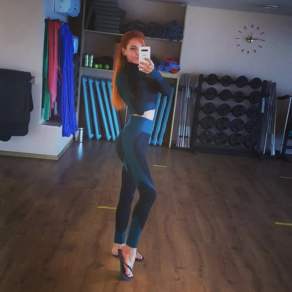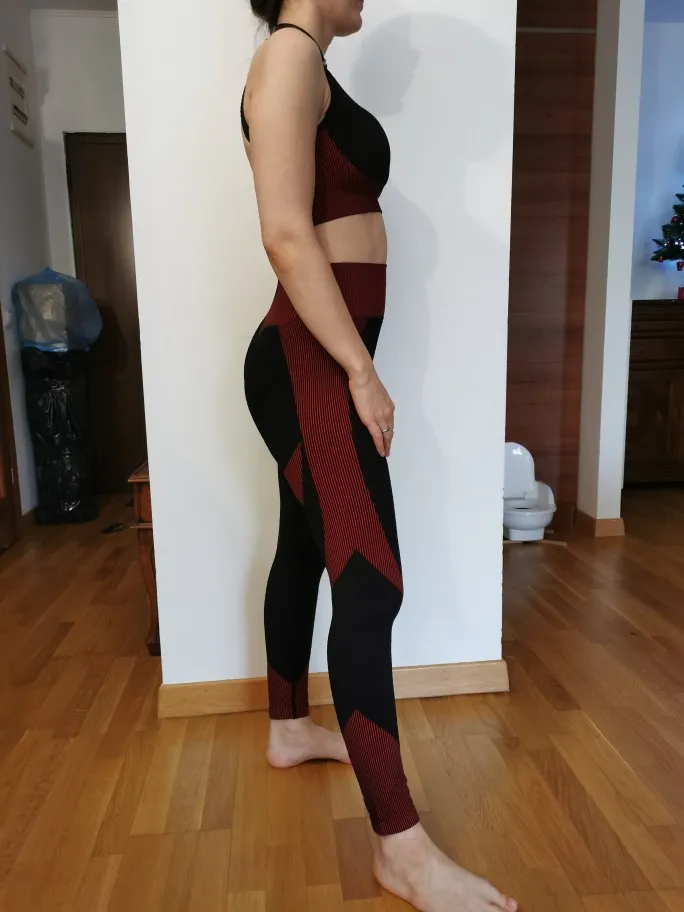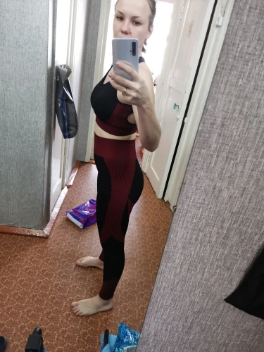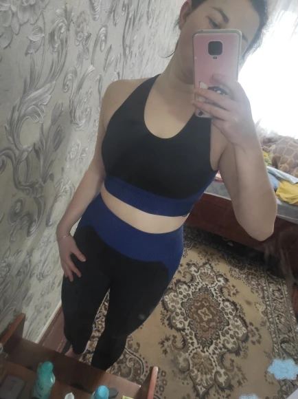 Крутейший костюм! Комфортный, качественный и очень секси! Топик позволяет не надевать бюстгальтер и это просто счастье! Моделирует фигуру, очень удачные вставки, которые визуально оттачивают силуэт, материал плотный и имеет массажный эффект, кожа потом в клеточку после трени. Короче, получив костюм и сходив на тренировку, пришла домой и заказала ещё два в других цветах! ))))))) Размер М на российский 44 и рост 168 сел идеально! Подошёл бы и S, но было бы не так комфортно, думаю, и сильнее открывался бы живот. Костюм супер, рекомендую! В Москву за 12 дней!