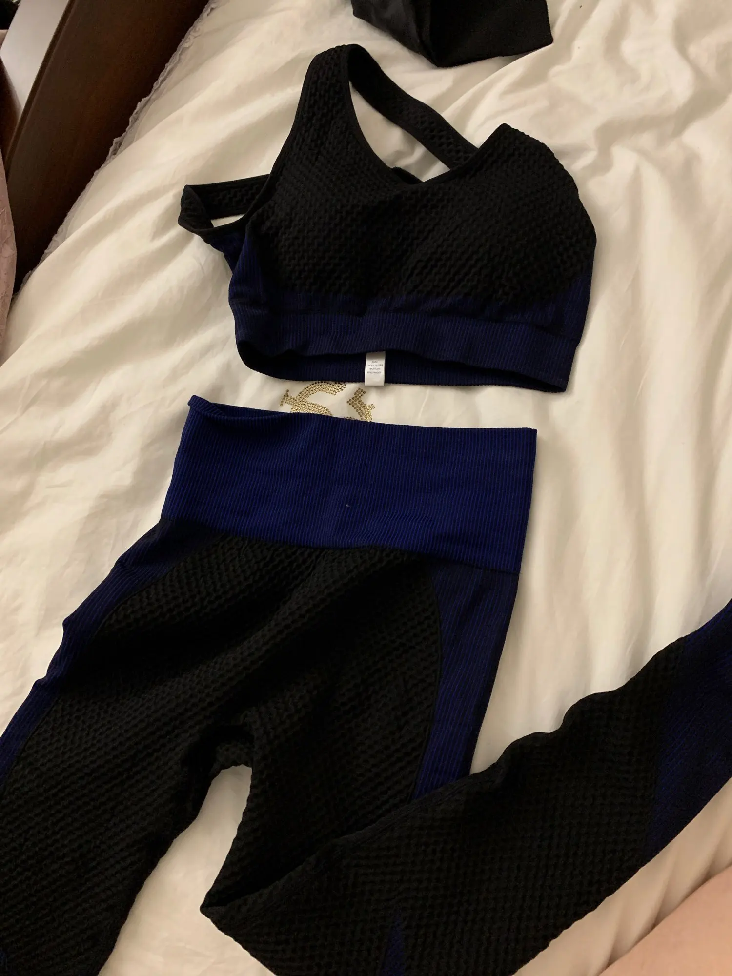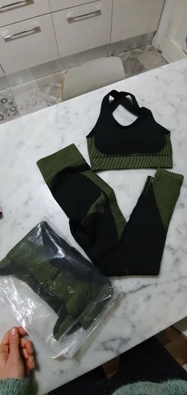 Очень красивый комплект из плотного и тонкого материала. Быстрая доставка! Есть в основном, но M, но теперь заказал размер L и сидит хорошо! Я очень доволен этим и теперь закажу еще больше одежды для фитнеса! Спасибо Aliexpress!