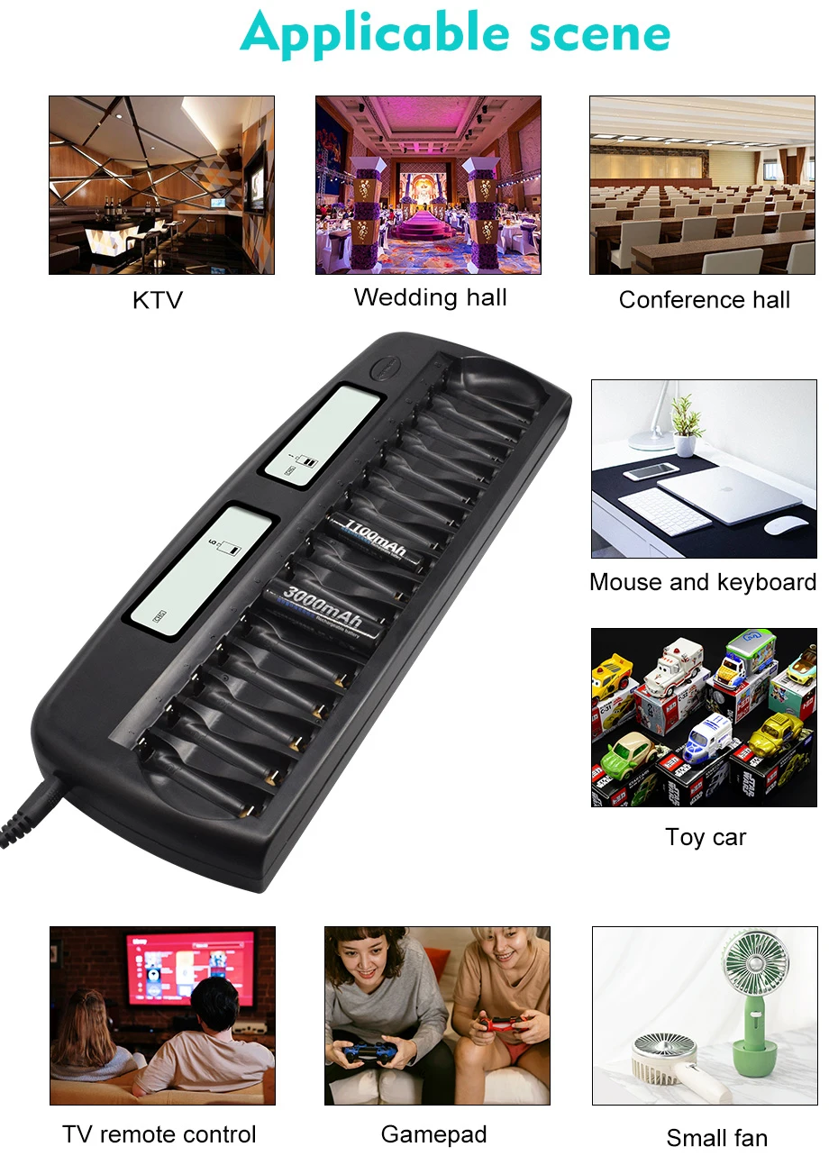 1. Для 1,2 V AA, AAA, никель-металл-гидридного или гидридных и никель-кадмиевых типов аккумуляторов перезаряжаемые Батарея2. Быстрая зарядка, независимый зарядный канал3. Поддержка смешанного заряда и быстрого выпуска4. ЖК-экран умный дисплей процесс зарядки и разрядки5. Номер модели NC316. Штепсельная вилка стандарта ЕС, США и Великобритании на выбор7. С 16 разъемами для зарядки