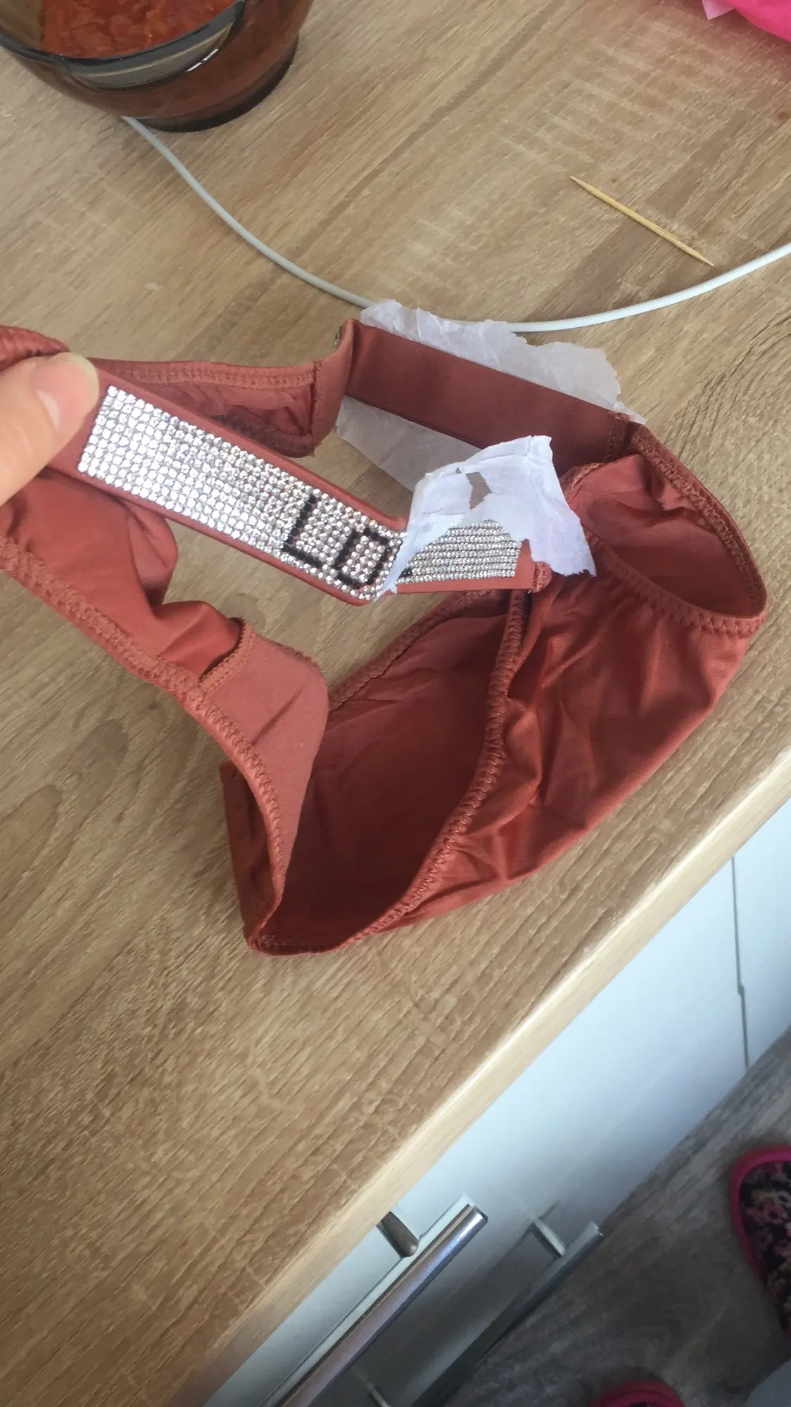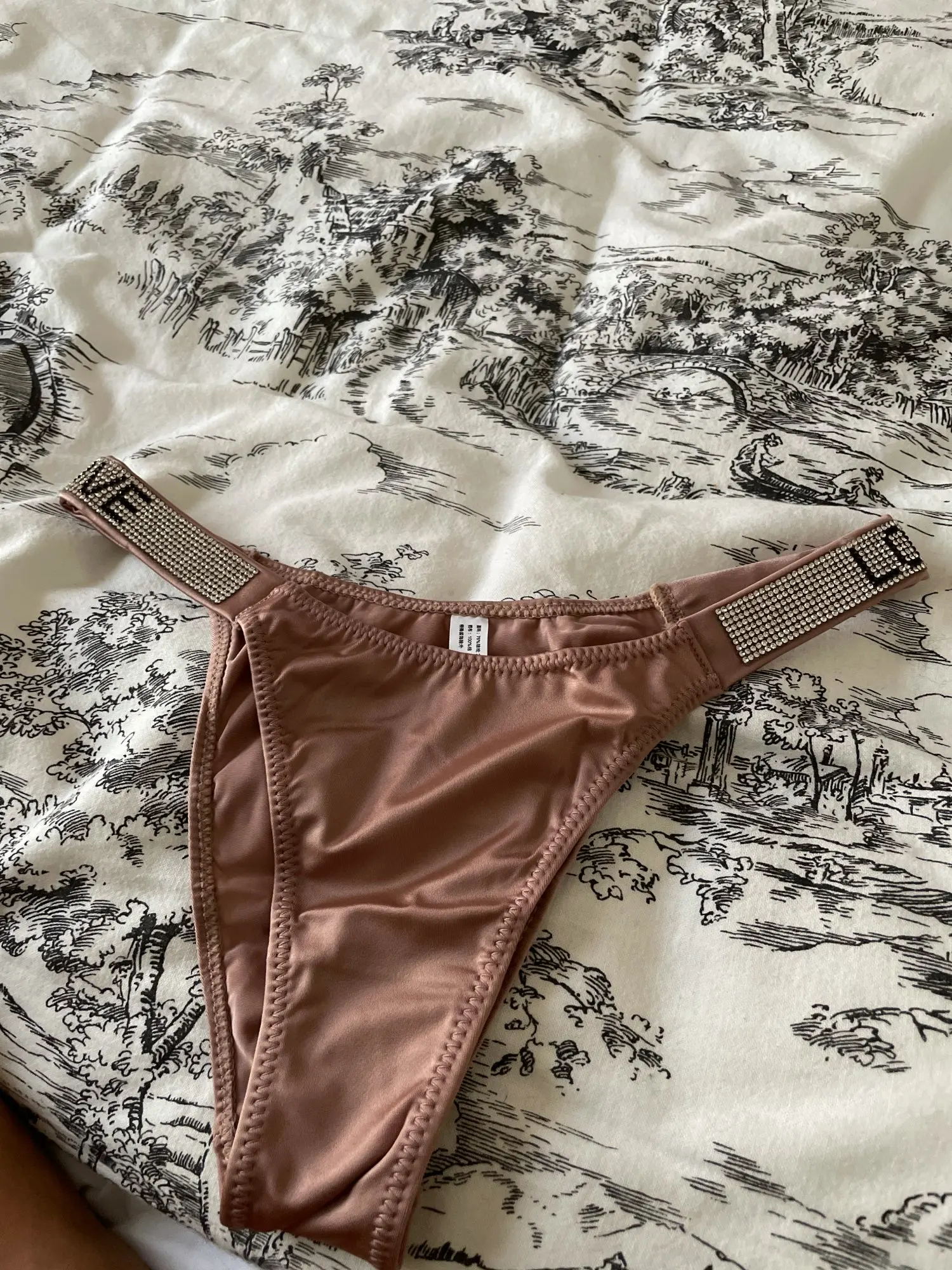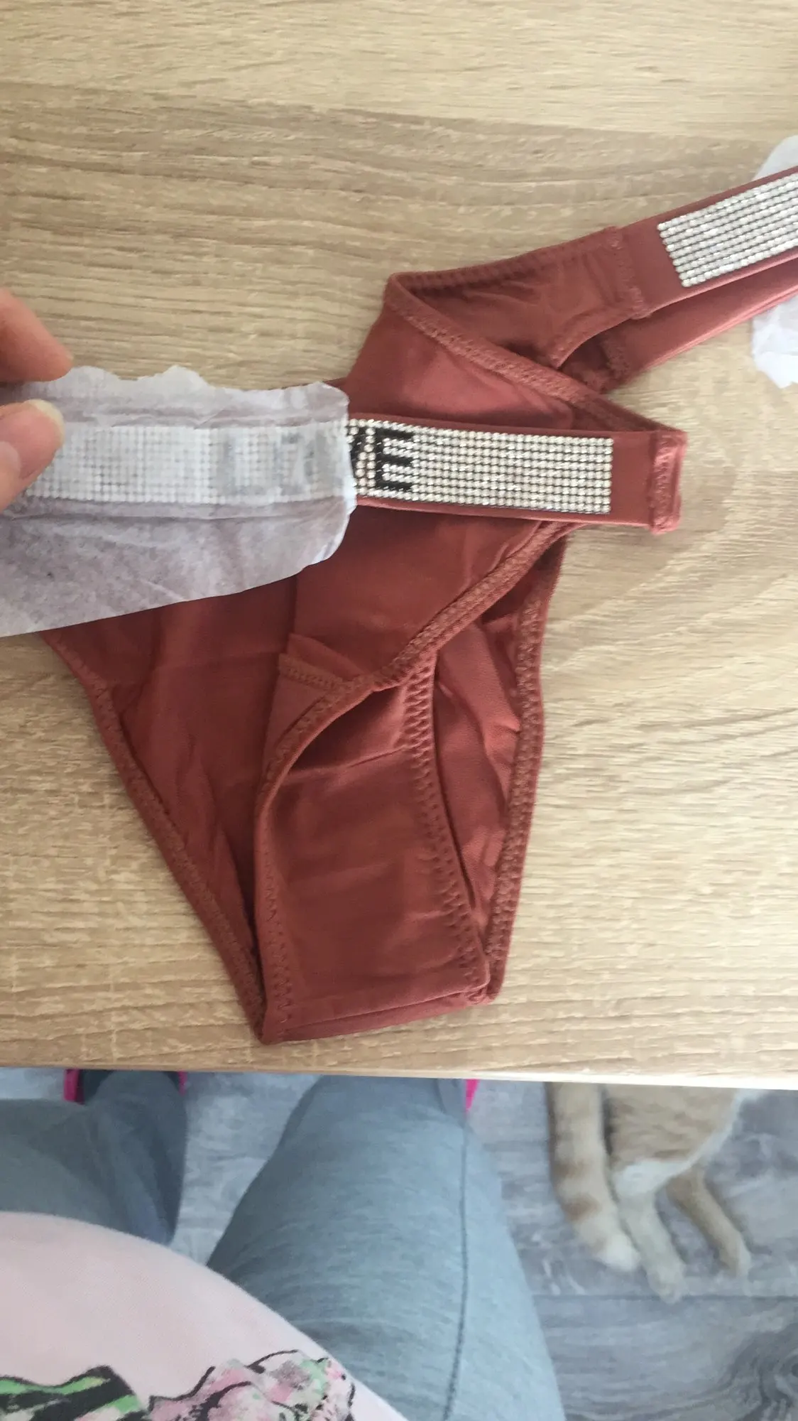 Нормальные трусы, по качеству ткани до оригинала вообще не дотягивает. Воняют клеем. Но все стразики на месте, мерцают красиво, размер соответствует сетке