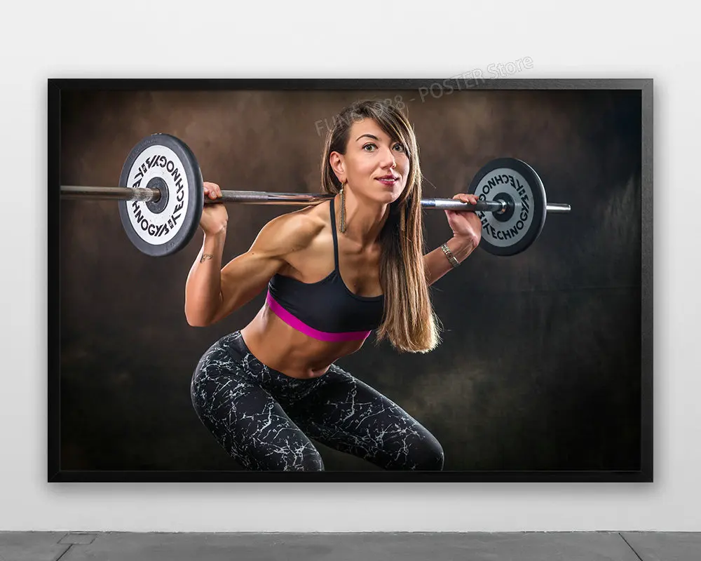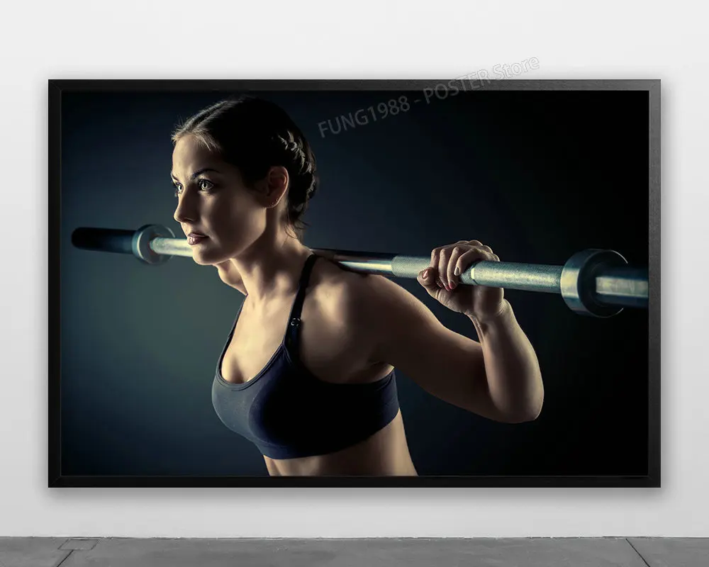 Плакаты со штангой, для тренировок, фитнеса, бодибилдинга, женские, сексуальные, красивые, крепкие, настенные, принты шелковая Живопись для дома, спальни