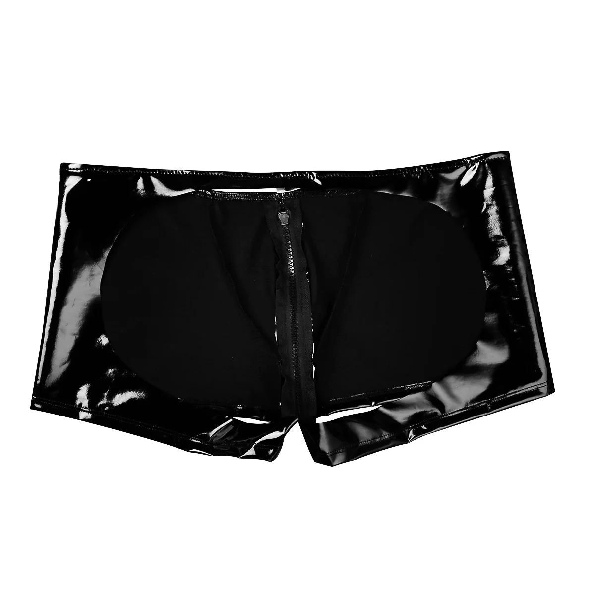 Черное Мужское нижнее белье, боксеры, шорты, блестящие Трусы из лакированной кожи, с отдельным мешочком на молнии, трусы с открытыми ягодицами, нижнее белье для геев
