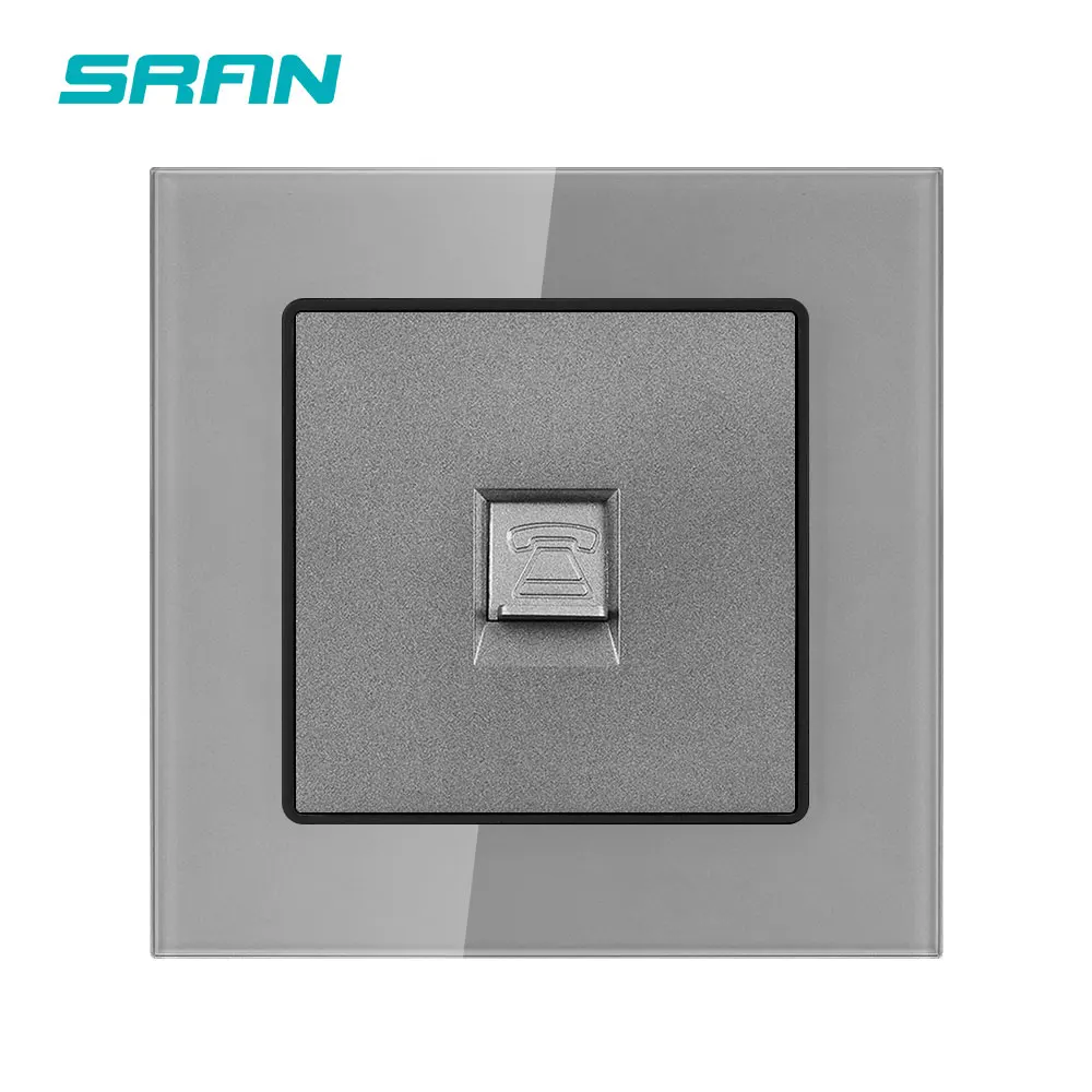 Розетка SRAN евро телефонная, белая кристаллическая панель из закаленного стекла, 82 мм * 82 мм, бытовая розетка интерфейса RJ11 F6XX002