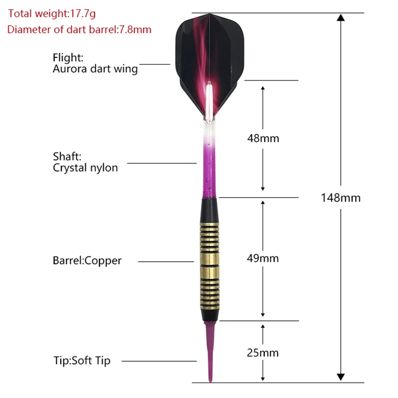 Мягкая заостренная Дротика s 3 шт./компл., Высококачественная упакованная в коробку электронная Дротика, товары для занятий спортом в помещении, медный бочонок, нейлоновые валы, полет