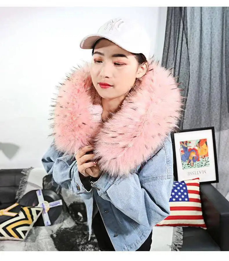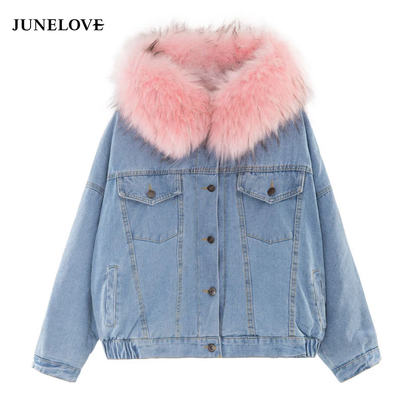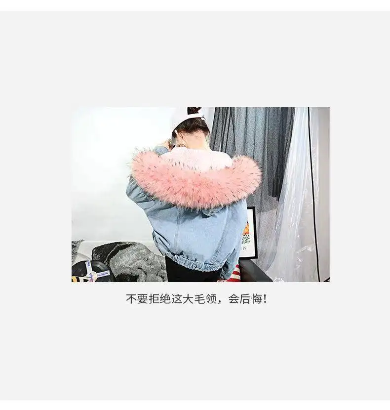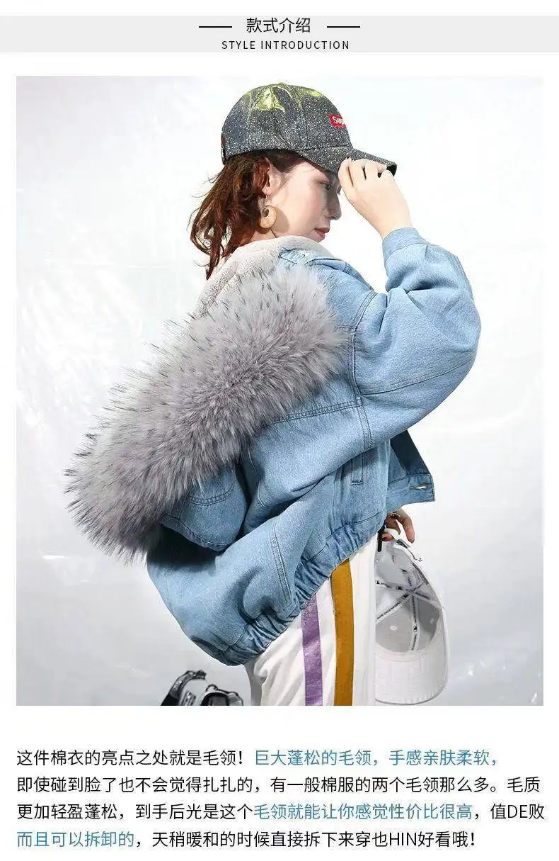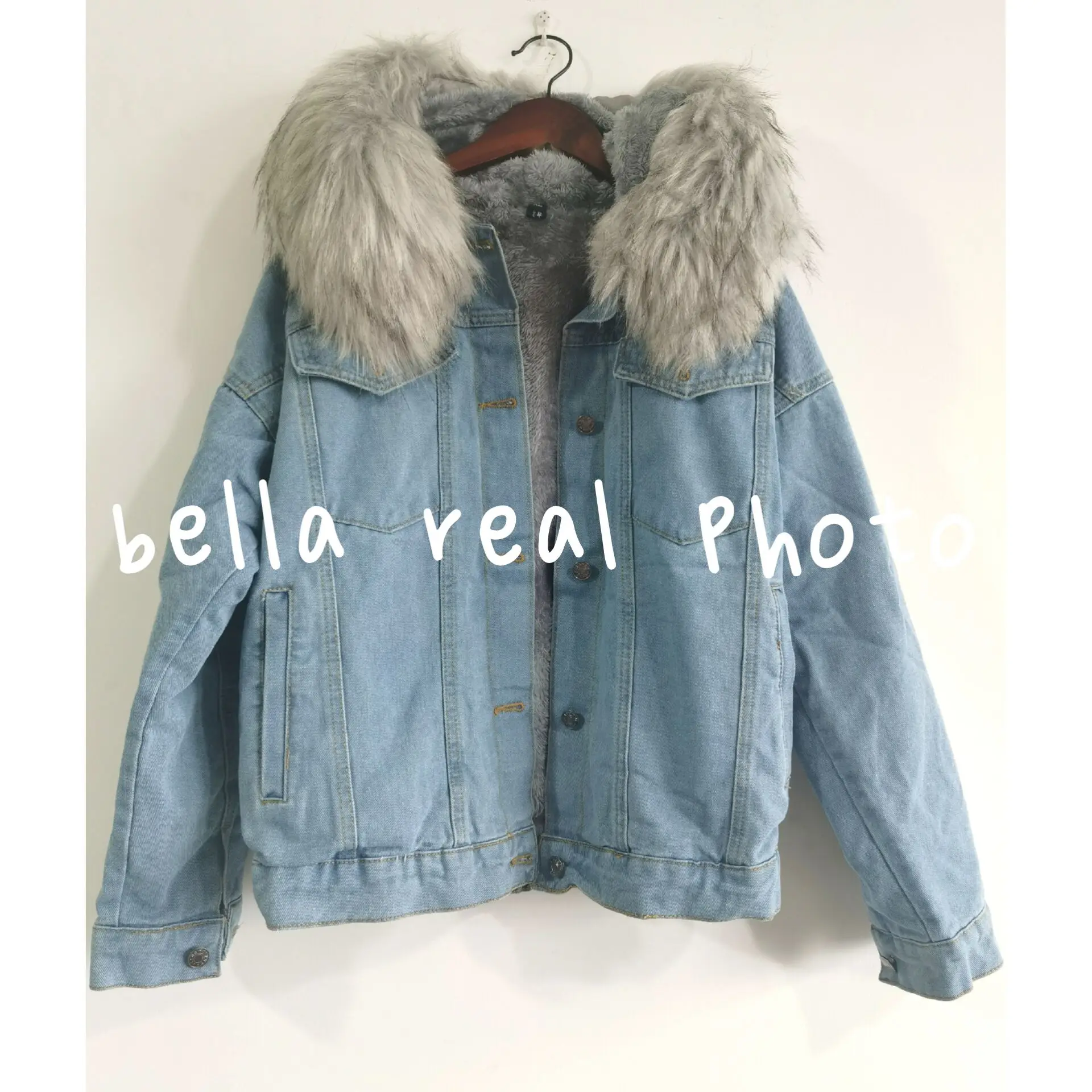 Женская джинсовая куртка, свободная утепленная куртка с большим мех...