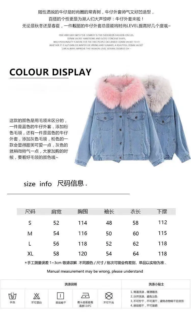 Куртка женская джинсовая, осенне-зимняя, теплая, пушистая, с меховы...