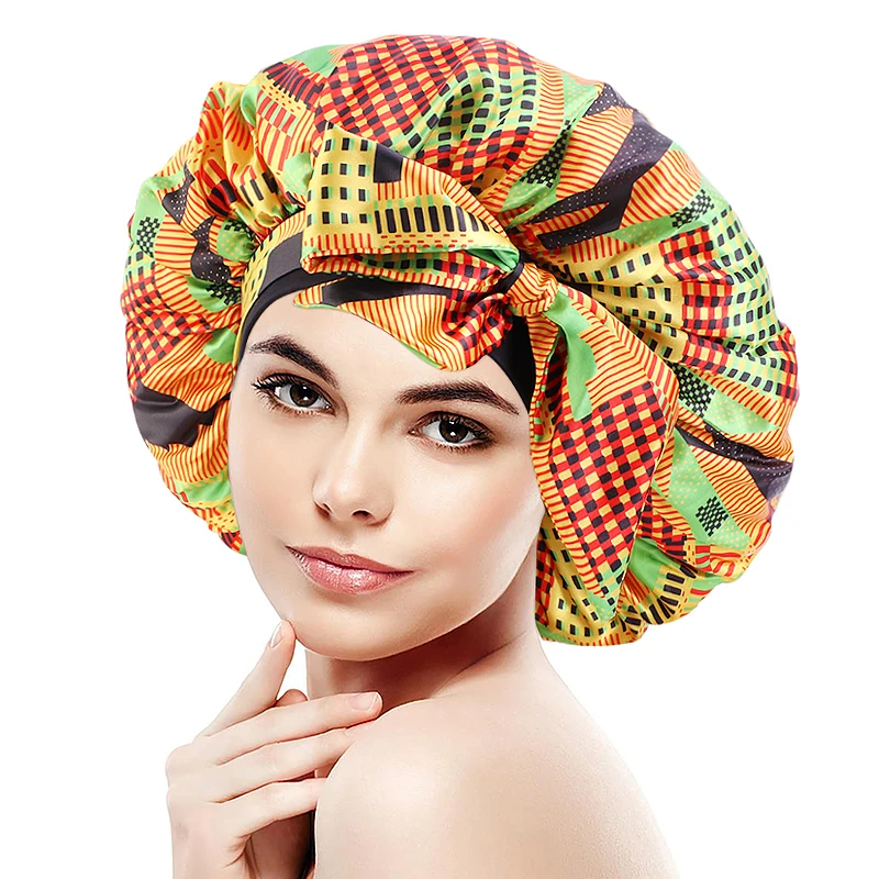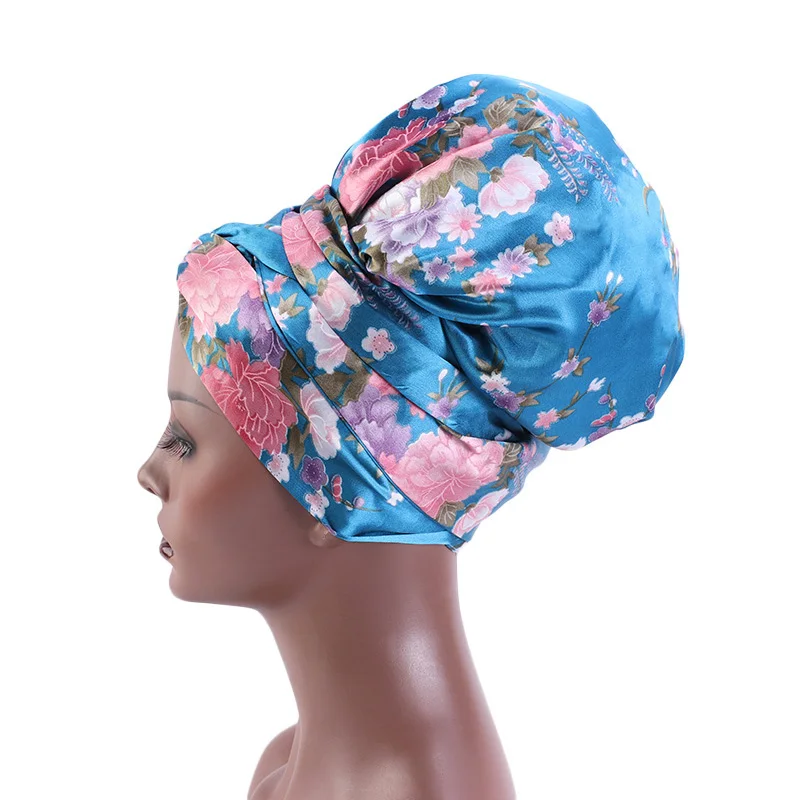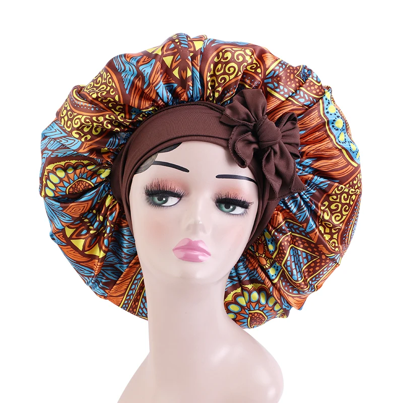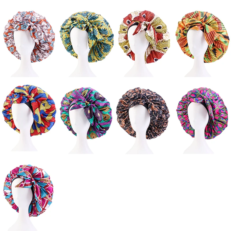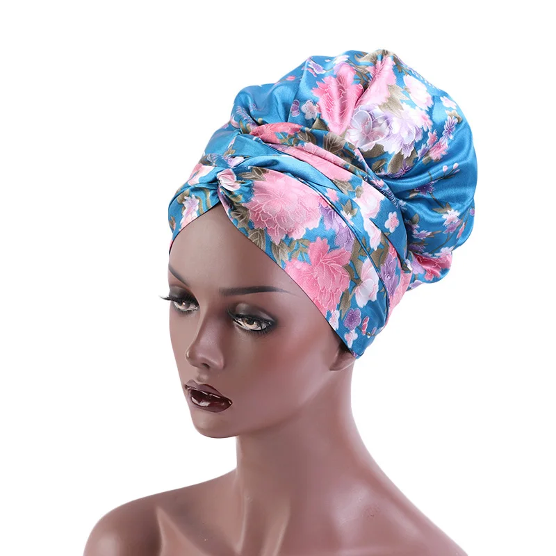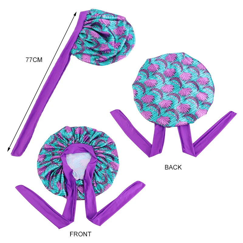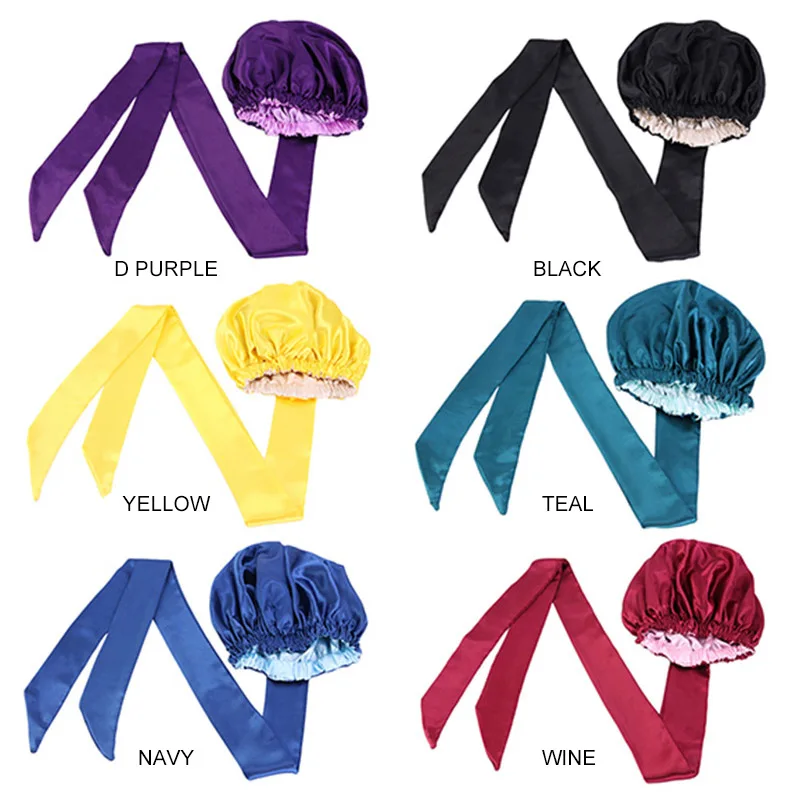Атласная шапочка, двухслойная, мягкая, с длинным ремнем, дышащая, однотонная, для сна, с лентой, аксессуар для волос