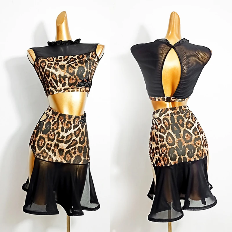Женское платье для латиноамериканских танцев, с леопардовым принтом, VDB2285