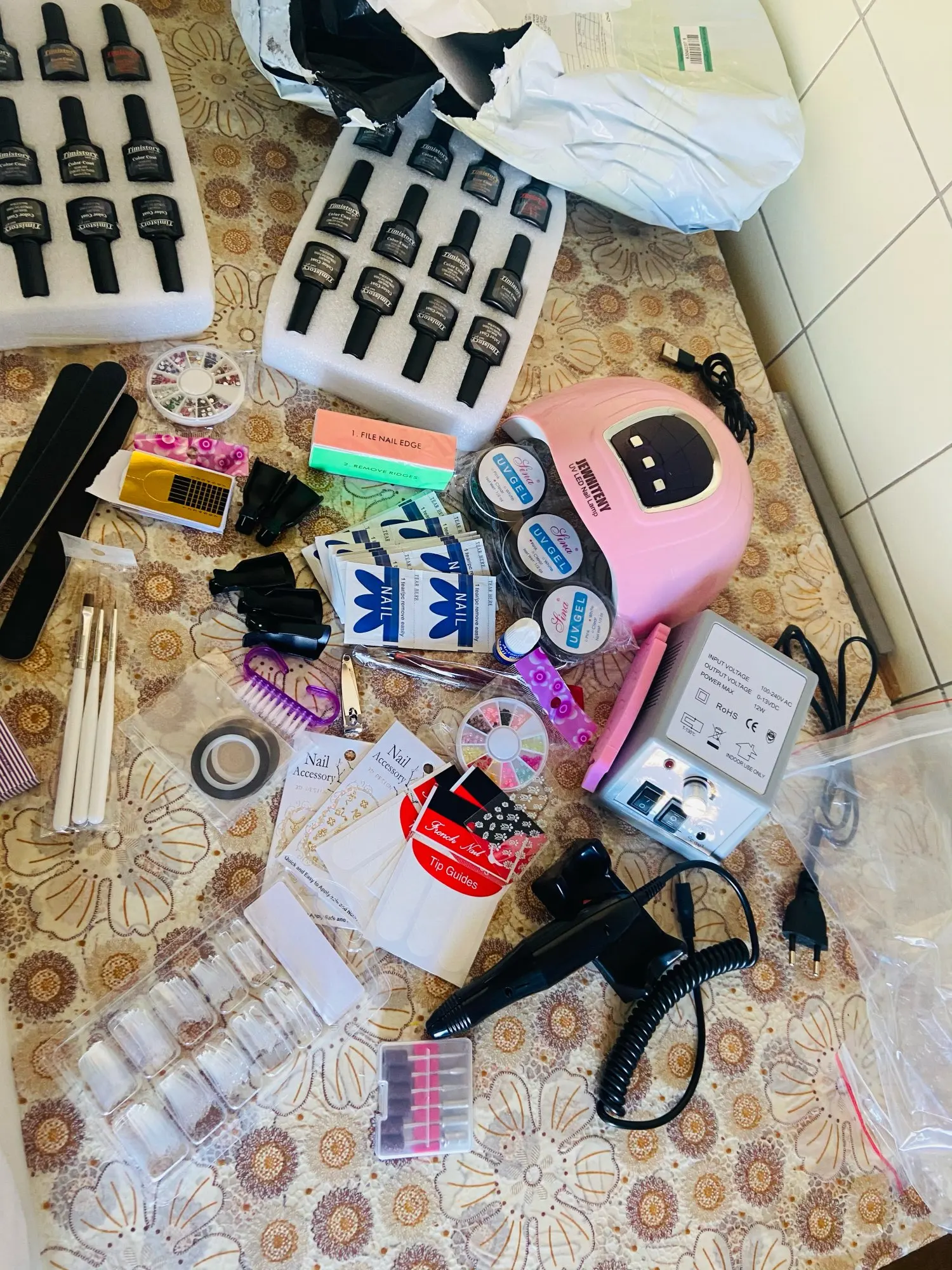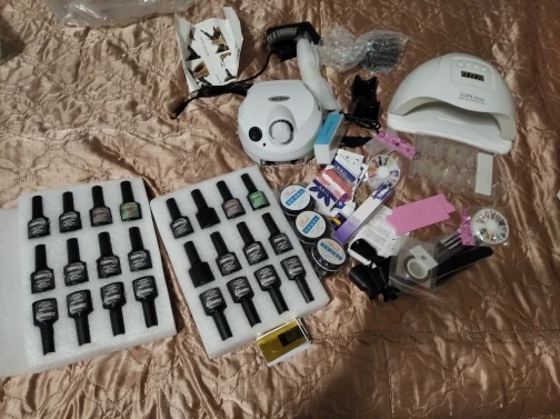 Список товаров. Лампа для ногтей * 135000/20000 ОБ/мин станок для сверления ногтей * 1. Шлифовальные ленты * 6. Сверла для ногтей * 6. Высококачественный Гель-лак * 40/30/20/10. Основа Под Гель-лак * 4/3/2/1. Верхнее покрытие гель-лака * 4/3/2/1. Масло для кутикулы * 1УФ-гель для наращивания ногтей (розовый) * 1УФ-гель для наращивания ногтей (белый) * 1УФ-гель для наращивания ногтей (прозрачный) * 1. Стальной Толкатель * 1. Шлифовальная Пилка * 3. Файловый буфер * 1. 4-сторонняя пилка для ногтей * 1. Вилка для мертвой кожи * 1. Пластиковый зажим для ногтей * 5. 12 цветов Стразы * 1. 12 цветов жемчуга * 1. Декоративный клей для ногтей * 1. Кусачки для ногтей * 1. Розовая Чистящая щетка * 1Модные наклейки для ногтей * 2Лист французских наконечников * 3Жидкость для снятия лака * 8Рулоны гвоздей Ленточные линии * 1020 x Форма для ногтейРучка для ногтей * 31 × 100 шт. накладные ногти