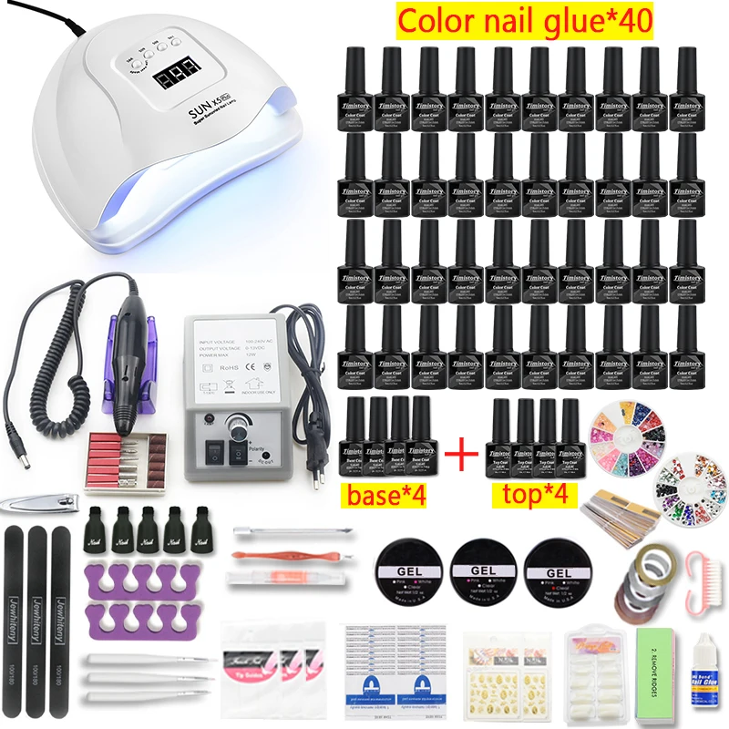 Аппарат для маникюра и педикюра, 40302010 цветов, Набор ногтей для маникюра с лампой для ногтей
