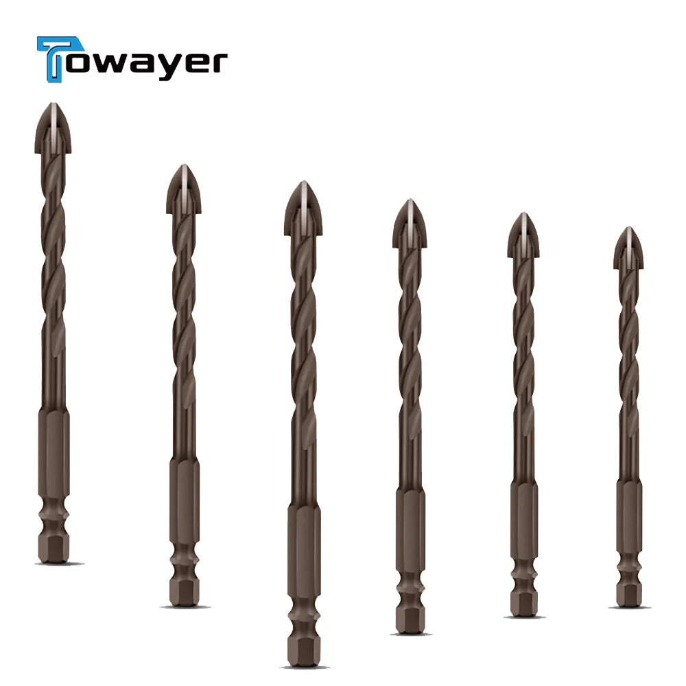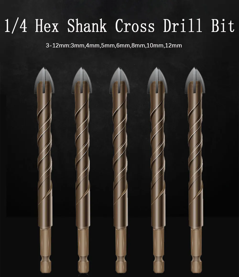 Крестовые шестигранные насадки для плитки, стеклянные, керамические, бетонные отверстия, сплав, Размеры 345681012 мм