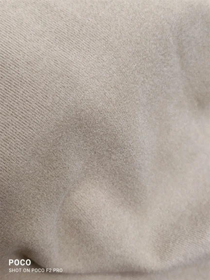 Ткань похожа на тонкий флис, цвет приятный. Теплая и уютная.