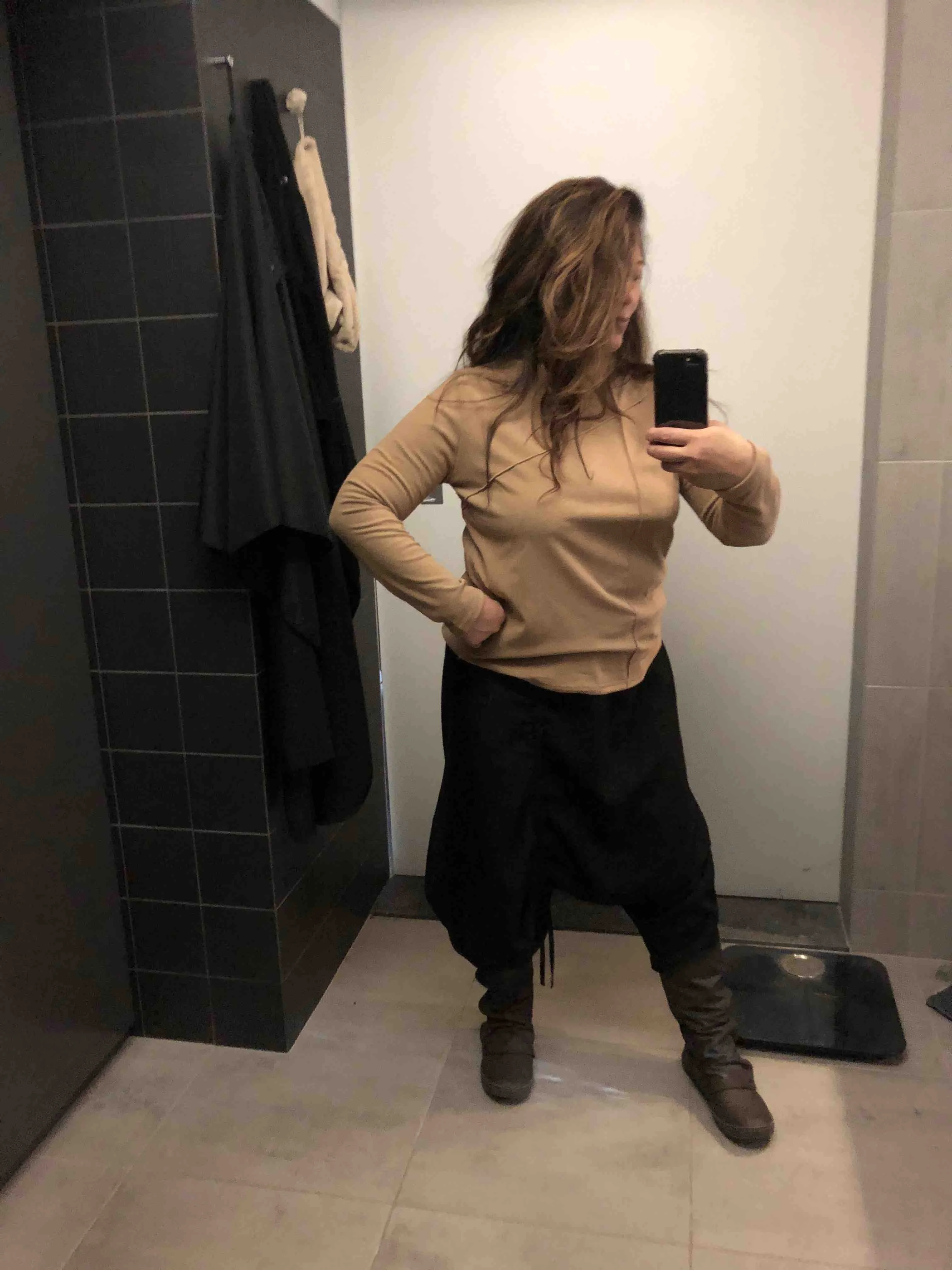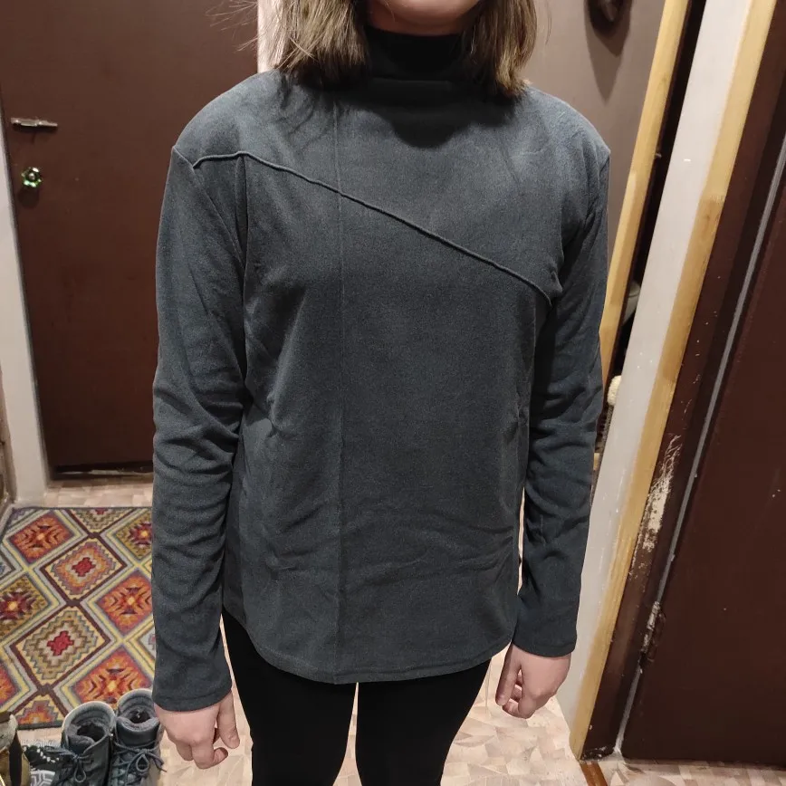 Кофта очень мягкая и приятная. Не толстая, но достаточно тёплая. На свой 46 размер брала XL, села хорошо, немного свободно. Рукава не короткие, что порадовало.