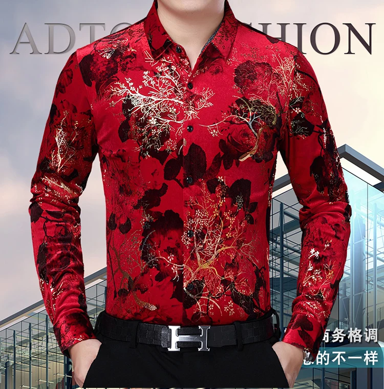 Осенне-размера плюс зеленые вельветовые рубашки, мужские красные платья, одежда больших размеров с цветами, велюровые мужские рубашки, мужские рубашки для отцов, зимние рубашки