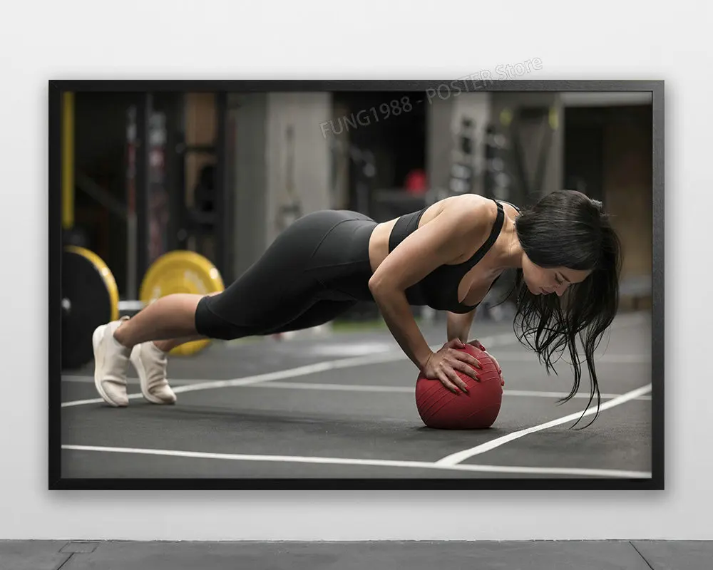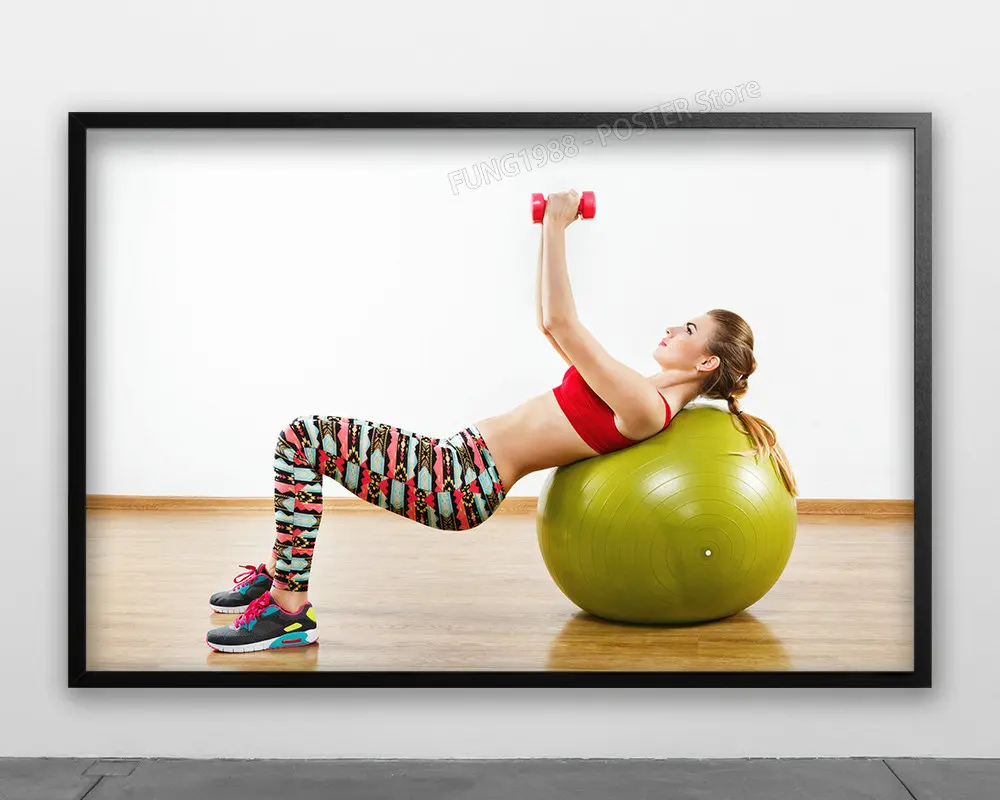 Баланс тренировочный мяч Фитнес Бодибилдинг Для женщин Сексуальная красивая крепкая стена Плакаты шелковая Живопись для дома Спальня