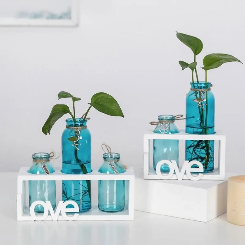 Синие прозрачные вазы с деревянной оправойUS $24,17