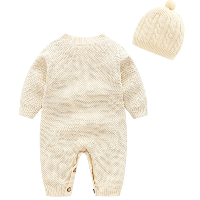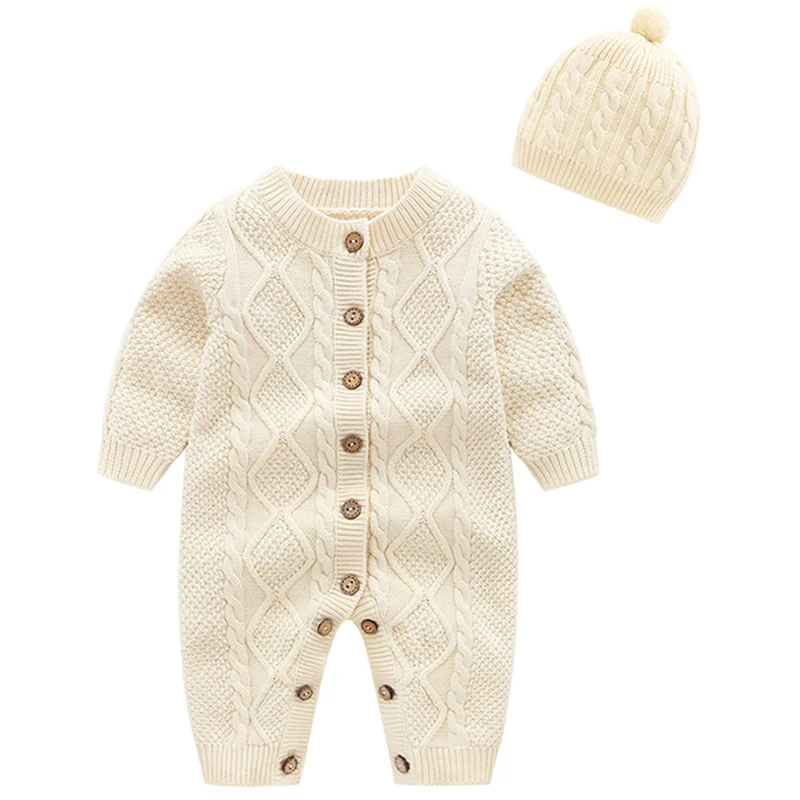 Вязаные Детские комбинезоны с длинным рукавом, Комбинезоны для маленьких мальчиков и девочек, одежда, Осенний Вязаный комбинезон для новорожденных, цельнокроеный Детский комбинезон