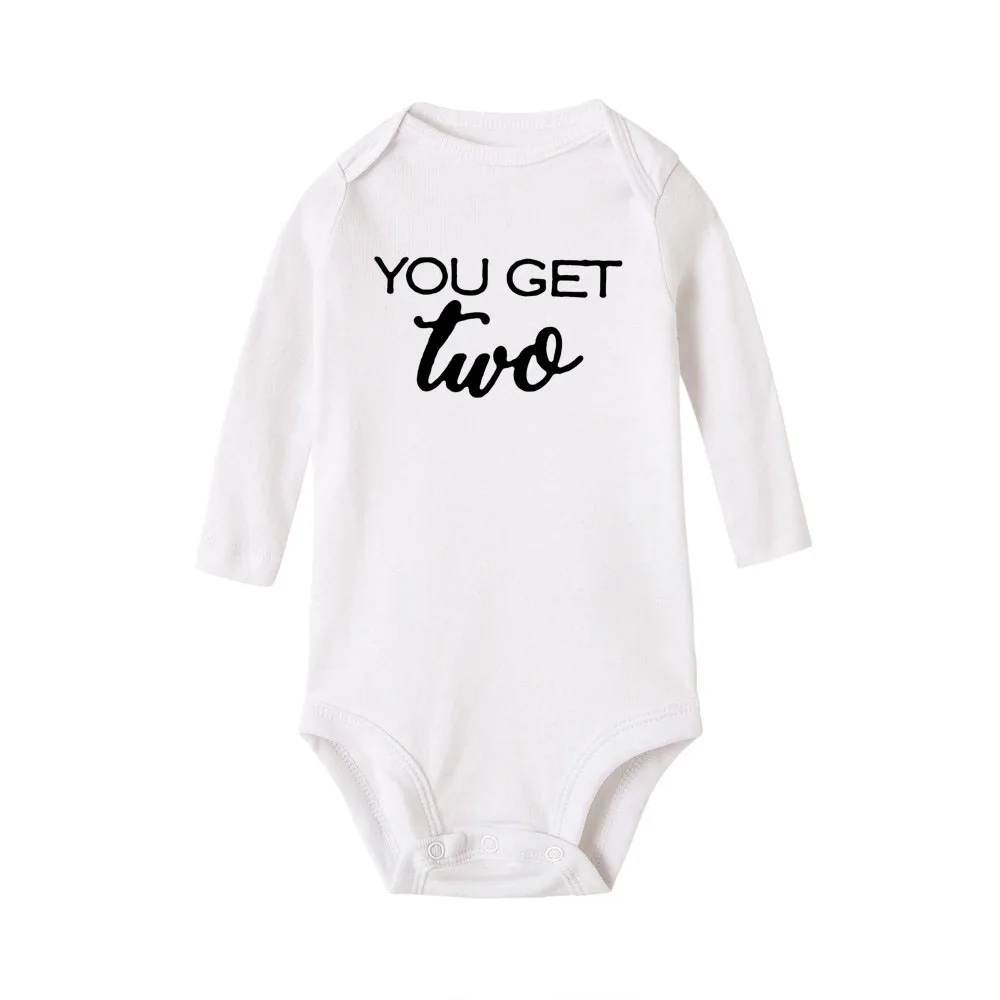 Повседневный боди для новорожденных мальчиков и девочек, повседневный комбинезон с длинными рукавами и буквенным принтом, комплект из 2 предметов, Одинаковая одежда для близнецов 0-24 месяцев