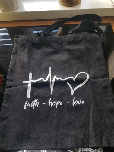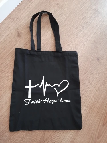 Очень красивые холщовые сумки с христианской надписью. Плотные, хоть и немного маловаты. Но я брала на подарок и пришли как раз перед Пасхой. Лучше брать с более мелкой надписью - аккуратнее выглядит.