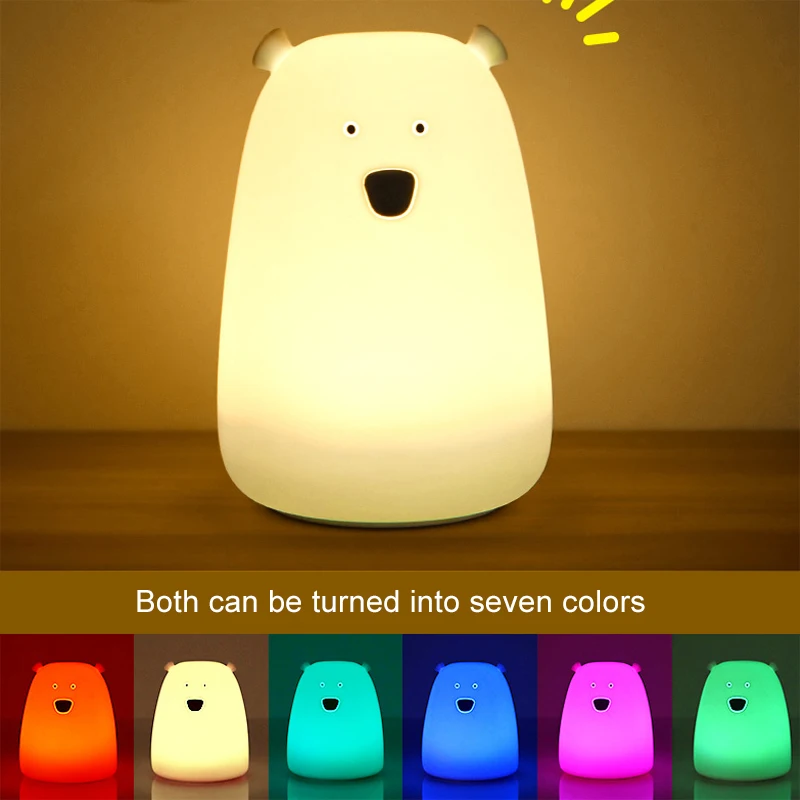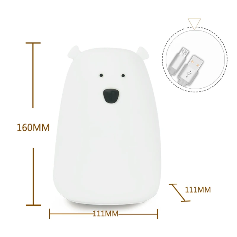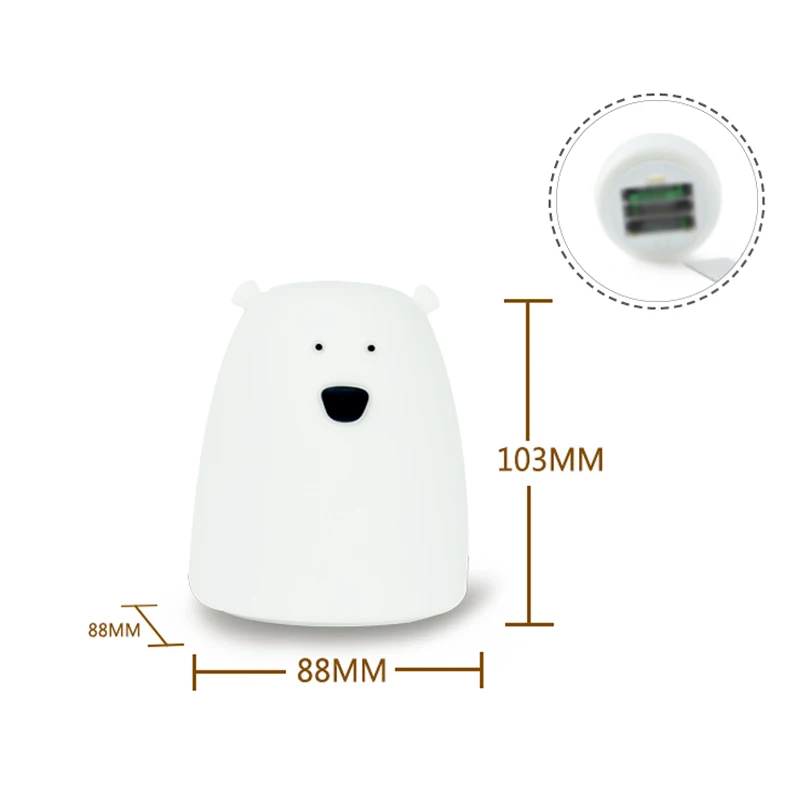 Силиконовый ночник с USB-зарядкойбатареей AAA, прикроватная лампа, цветной светильник медведя, Детский милый Ночник светильник для спальни