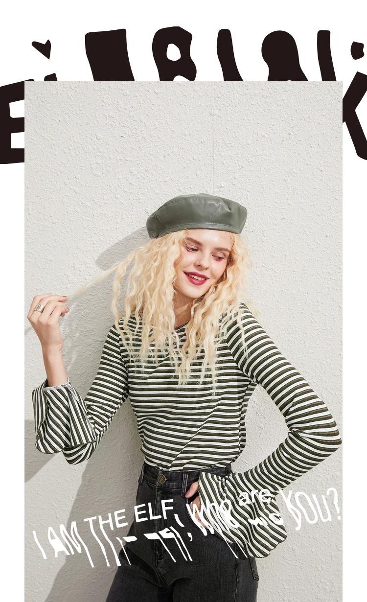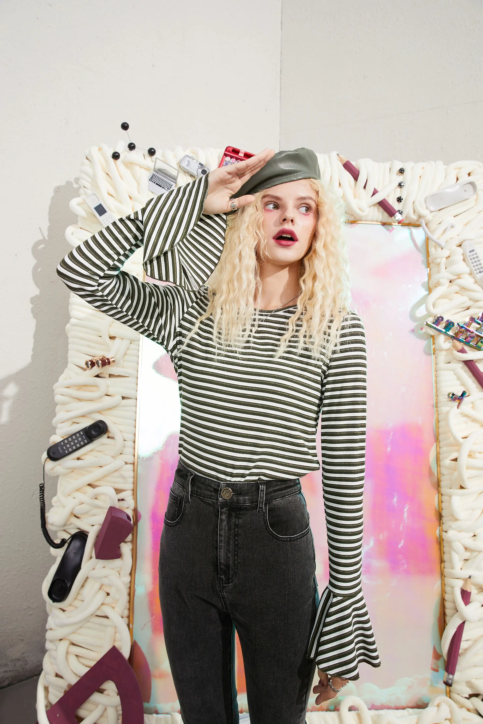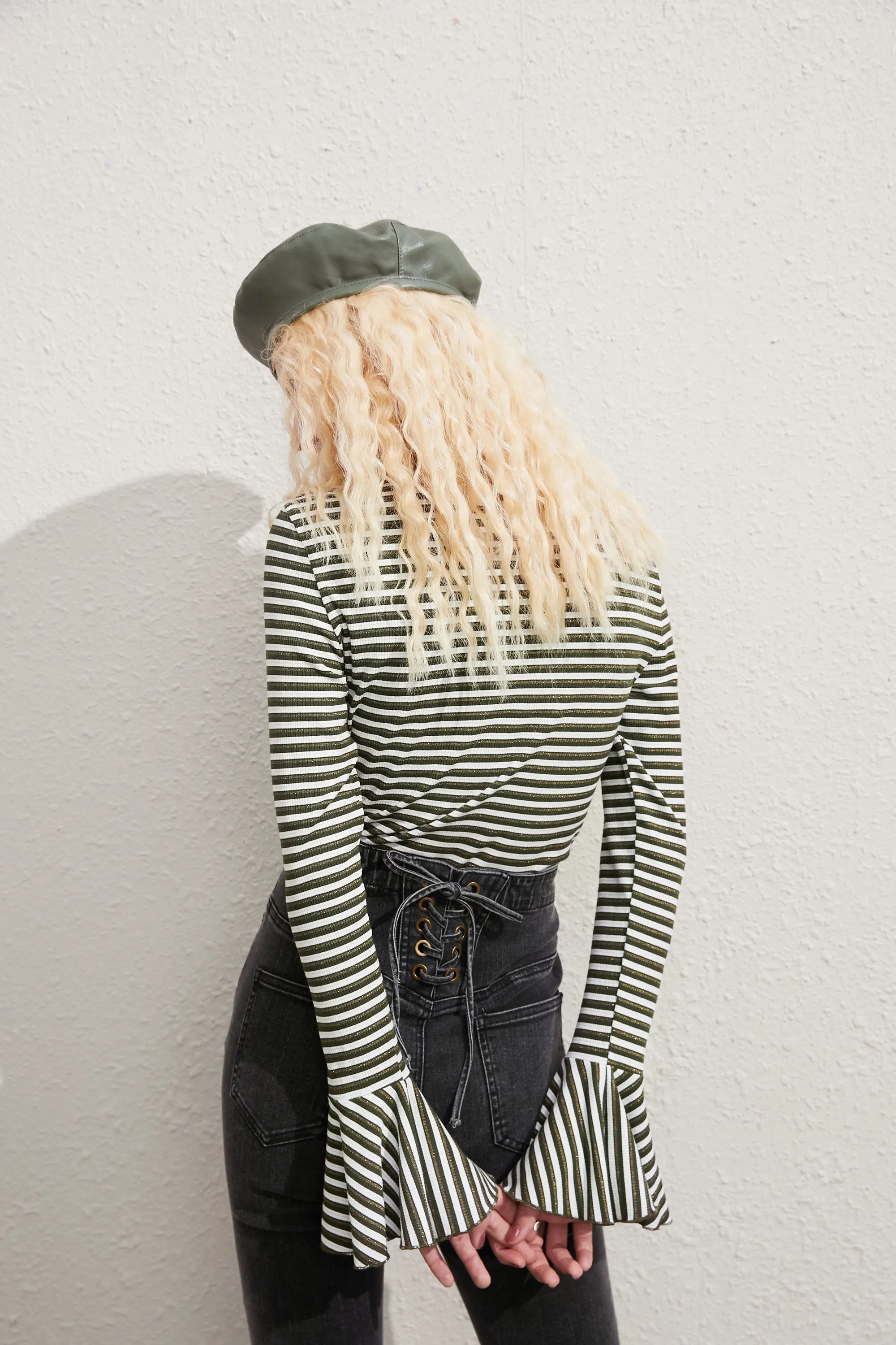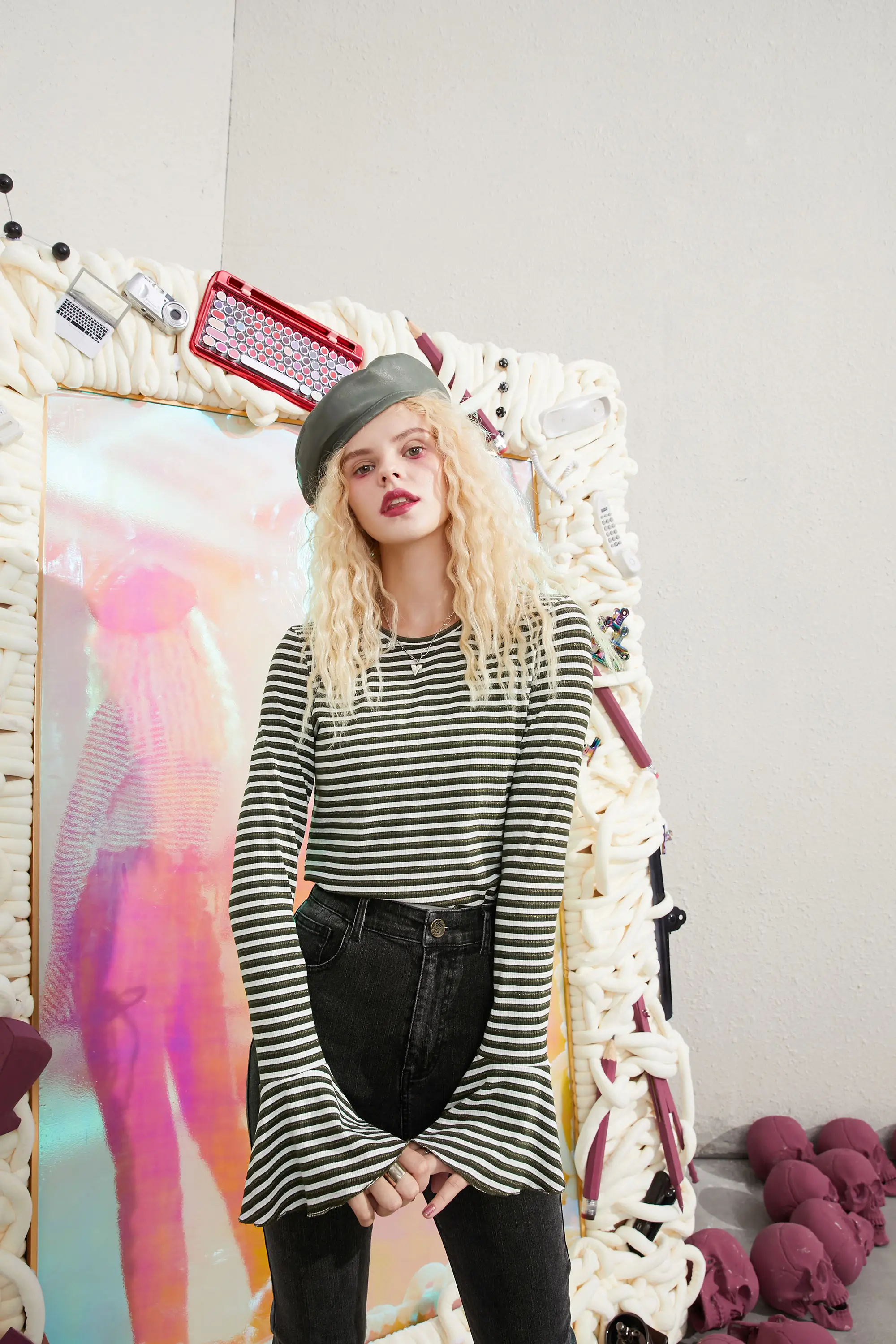 Женский вязаный Повседневный пуловер ELFSACK, зеленый полосатый свитер с рукавами-бабочками в Корейском стиле на осень 2020
