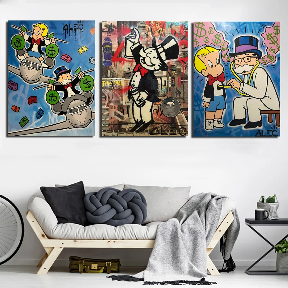Alec монополи граффити все о денежном холсте печатные картины модульные картины для гостиной постер на стену для дома