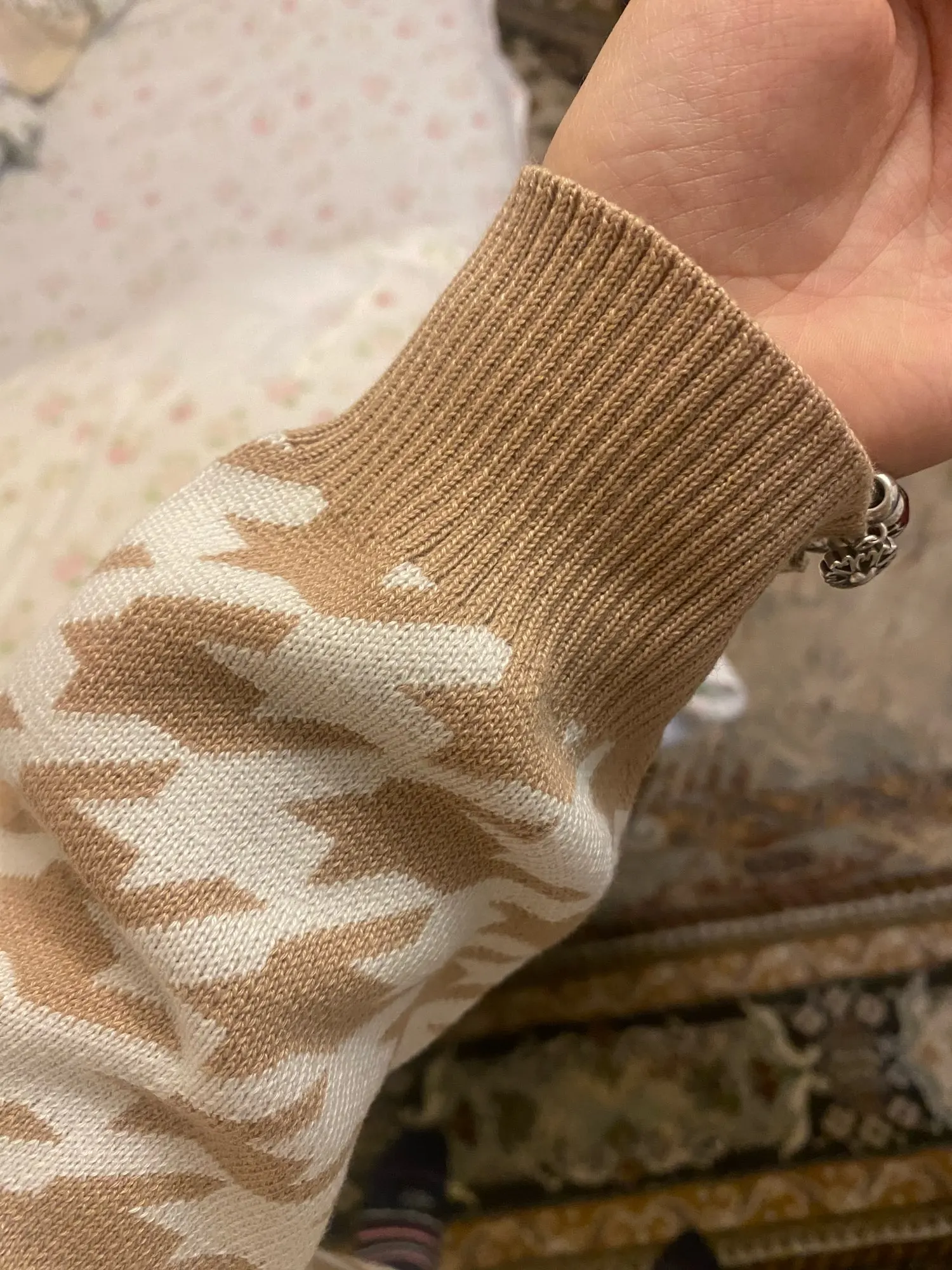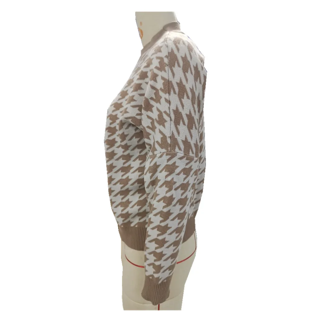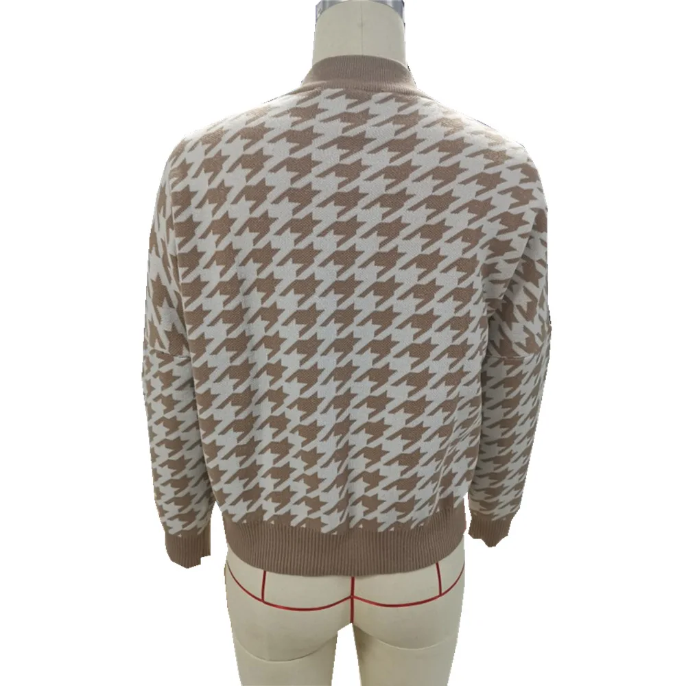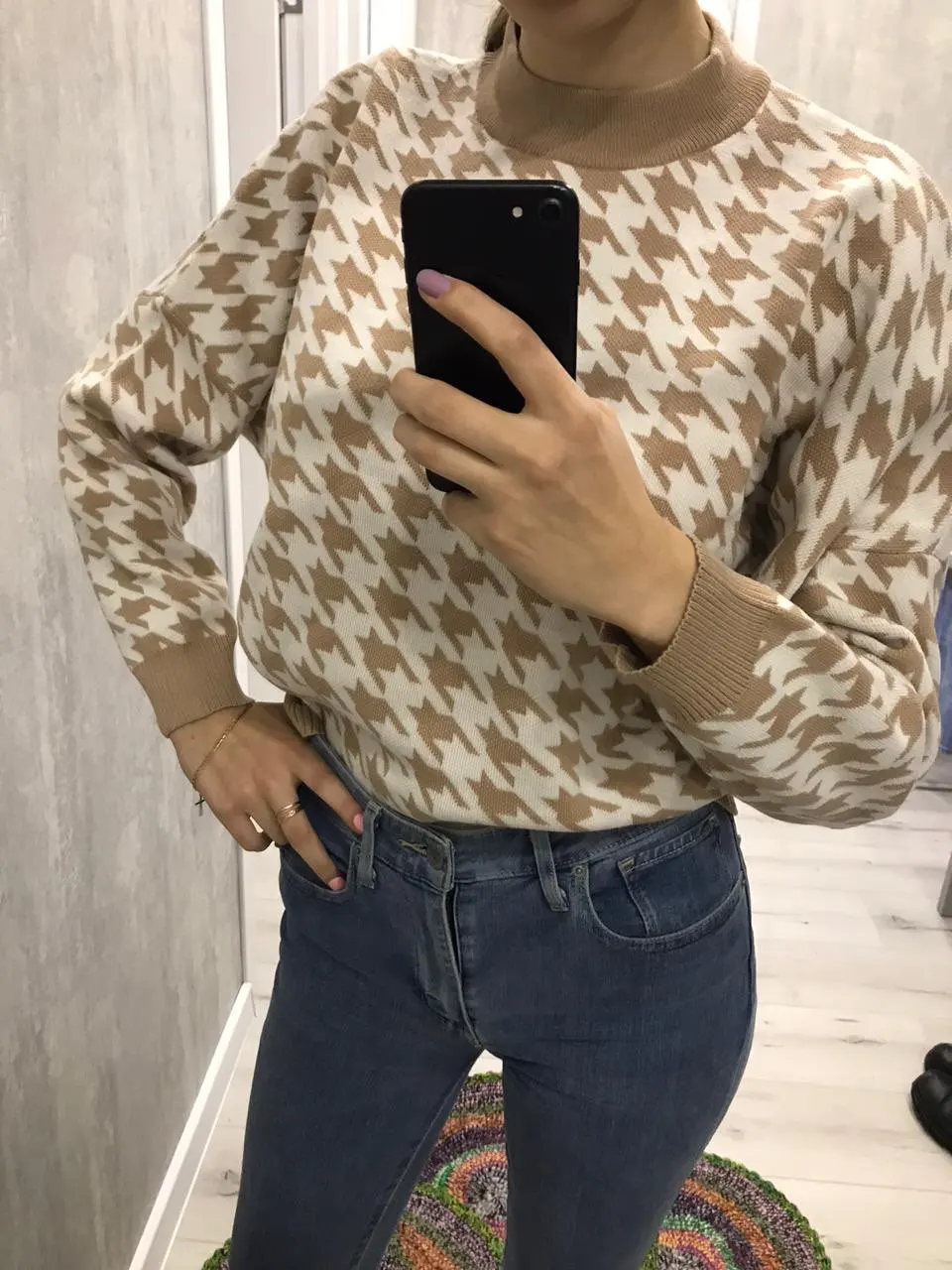 Свитер женский трикотажный в стиле ретро, с геометрическим узором, цвета хаки, Осень-зима, 2020