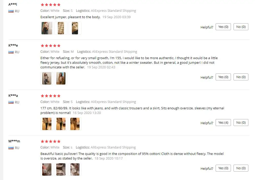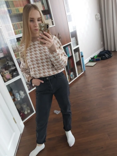 Это моя самая лучшая покупка на Алиэкспрэсс! Свитер просто идеальный, я влюбилась. Ткань очень приятная на ощупь и к телу. Цвет очень нежный. Я взяла С размер так, как я худая по телосложению. Все подошло, понятное дело, оверсайз, но не висит
