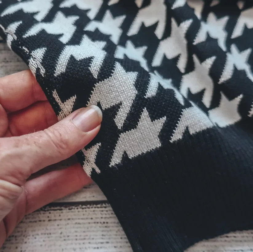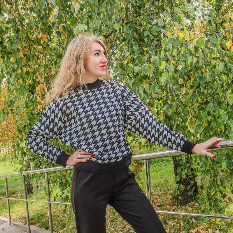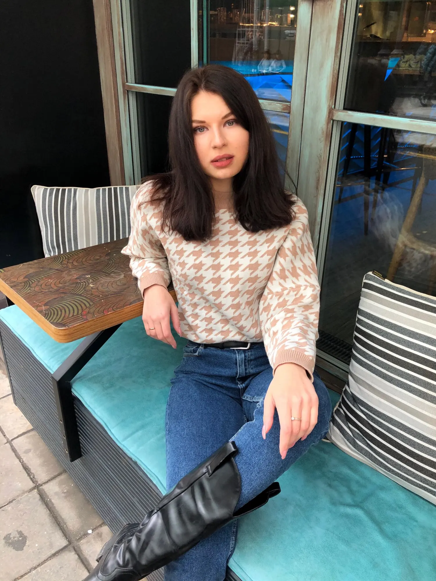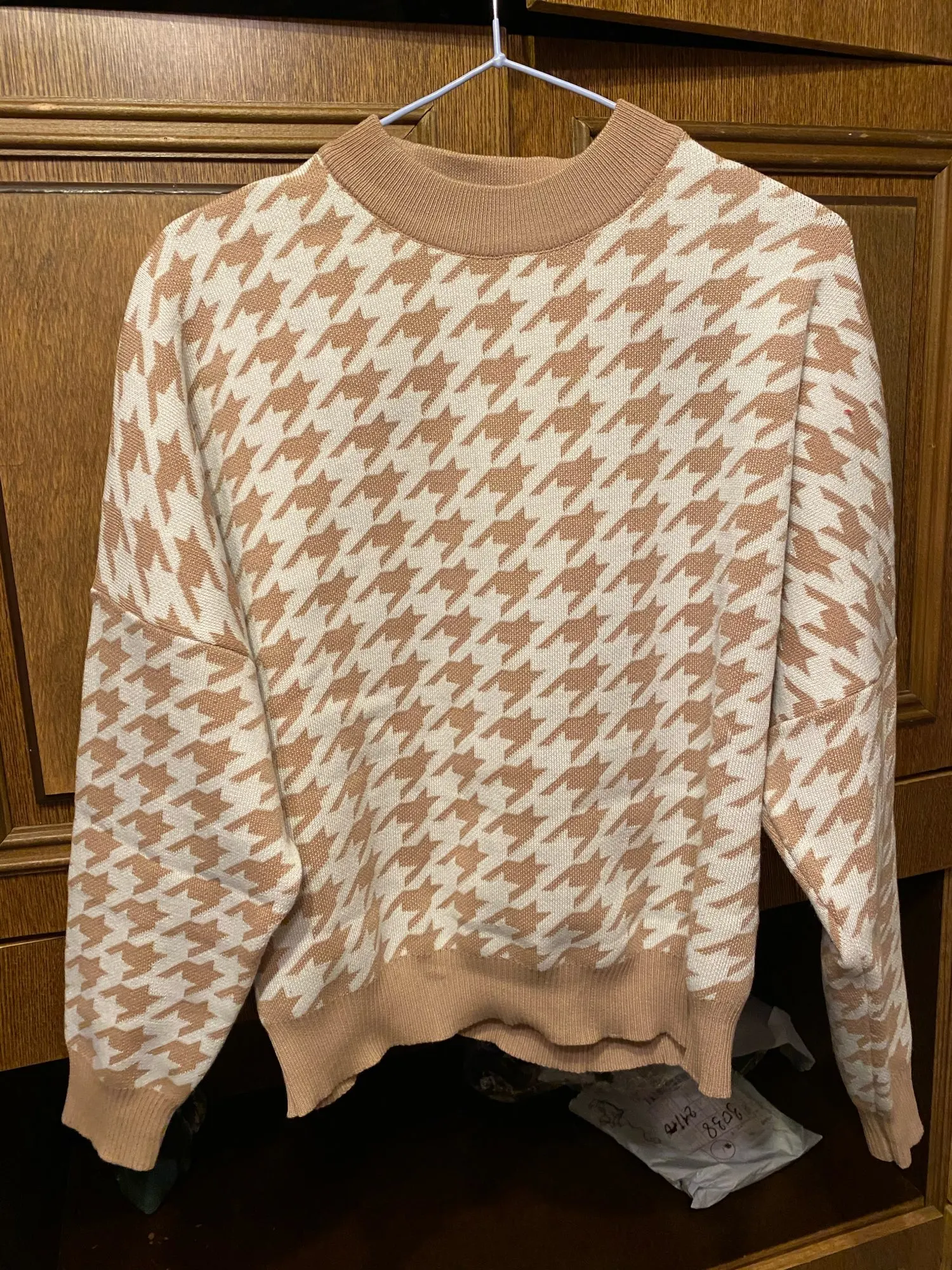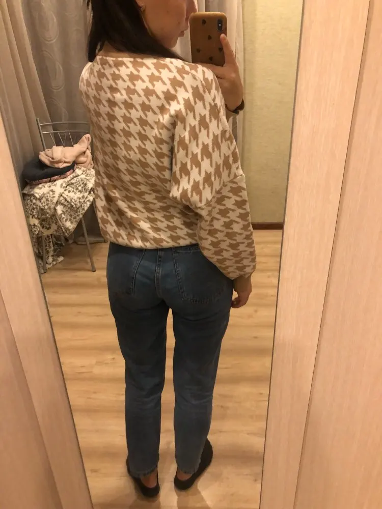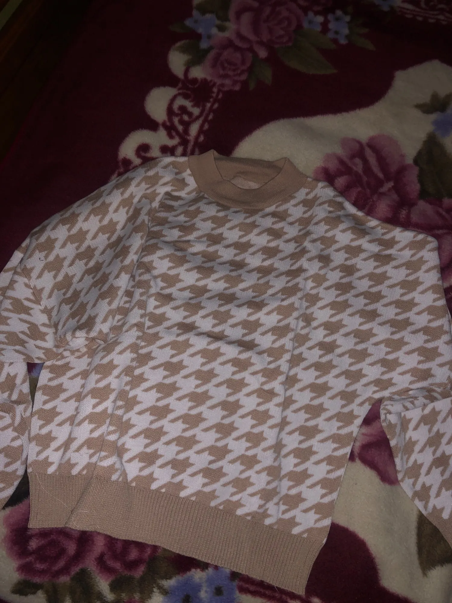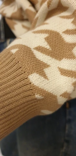 Свитер очень приятный, хороший. Швы аккуратные. Думала, что будет немного другой цвет( на фоне гусиной лапки Белый цвет, ожидала бежевый). Заказывала 11 ноября, пришел 19 декабря. В принципе, я довольна. Покупайте) не пожалеете