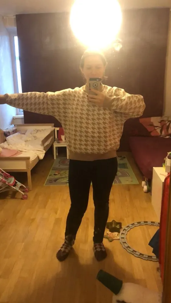 Свитер большого размера из приятного хлопка. Точно так же, как показано на фотографиях. БЫСТРО прибыл во Францию в течение 2 недель. Спасибо продавцу