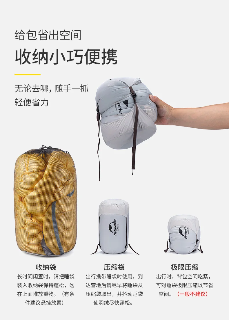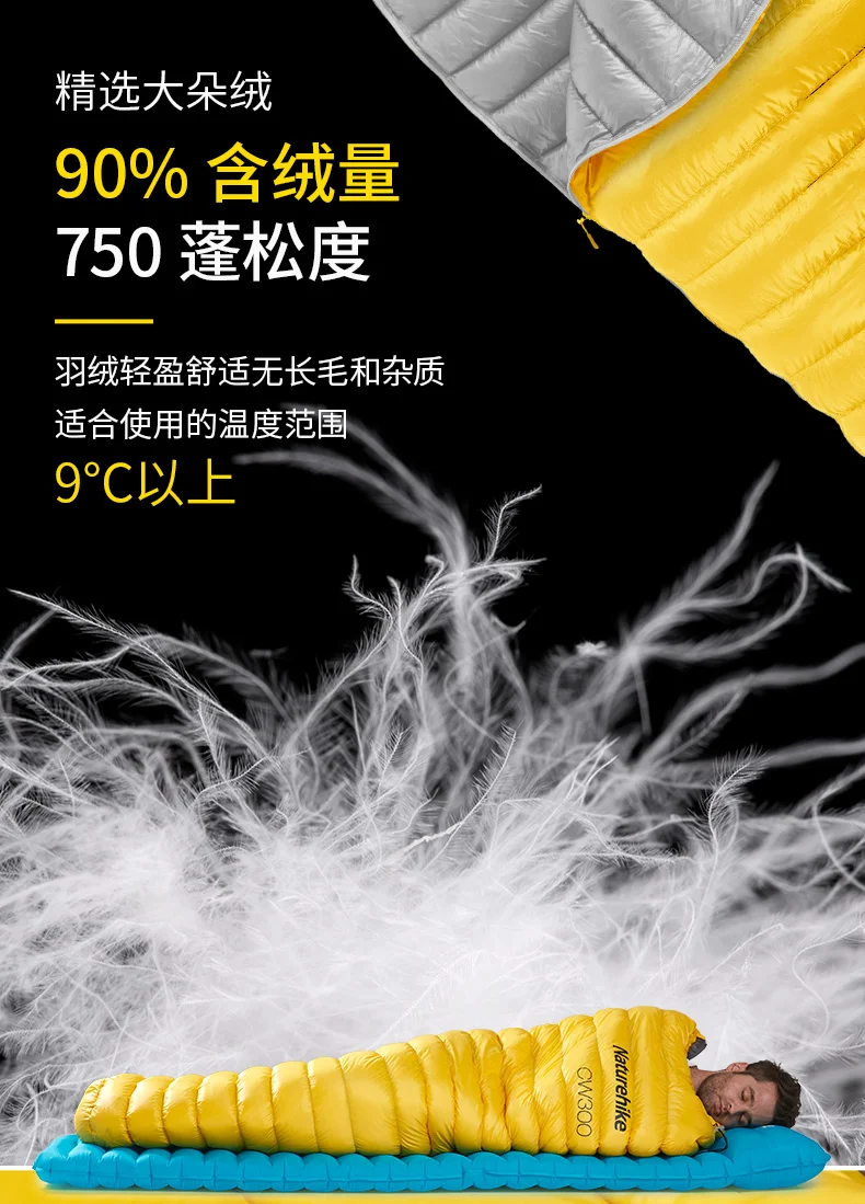 Спальный мешок Naturehike CW300, 750FP, Сверхлегкий, белый гусиный пух, для зимних походов, путешествий, NH18S300-D