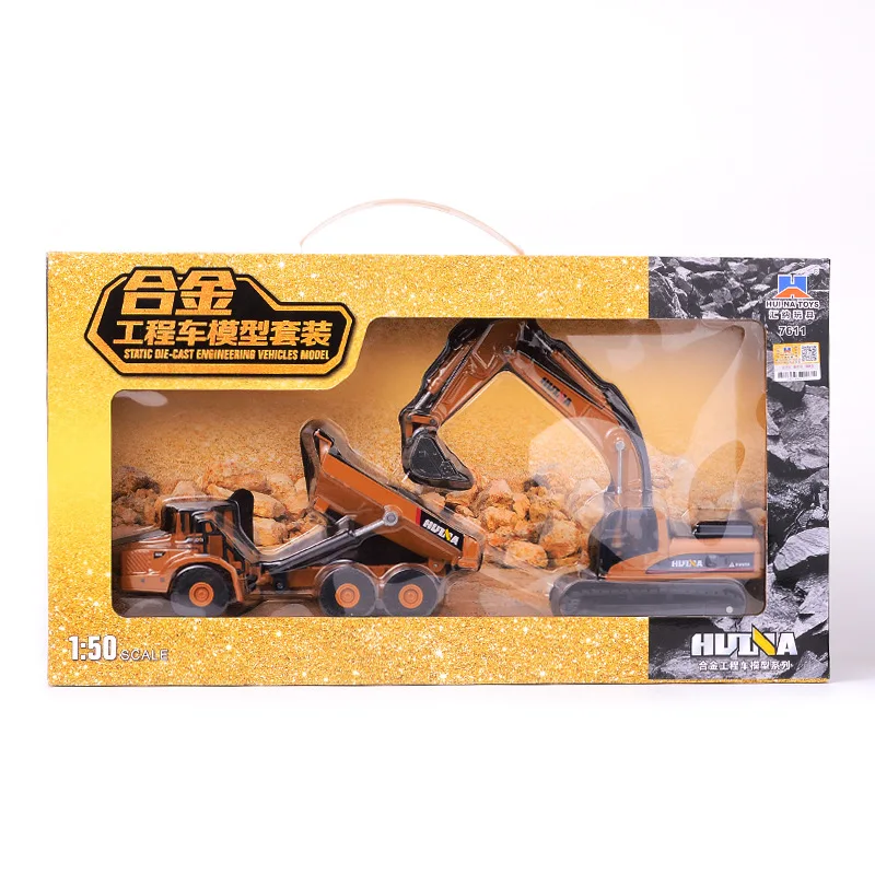 Модель автомобиля 1:50, литая под давлением, из сплава, Инженерная модель автомобиля, экскаватор, самосвал, набор, многошарнирная подвижная детская игрушка