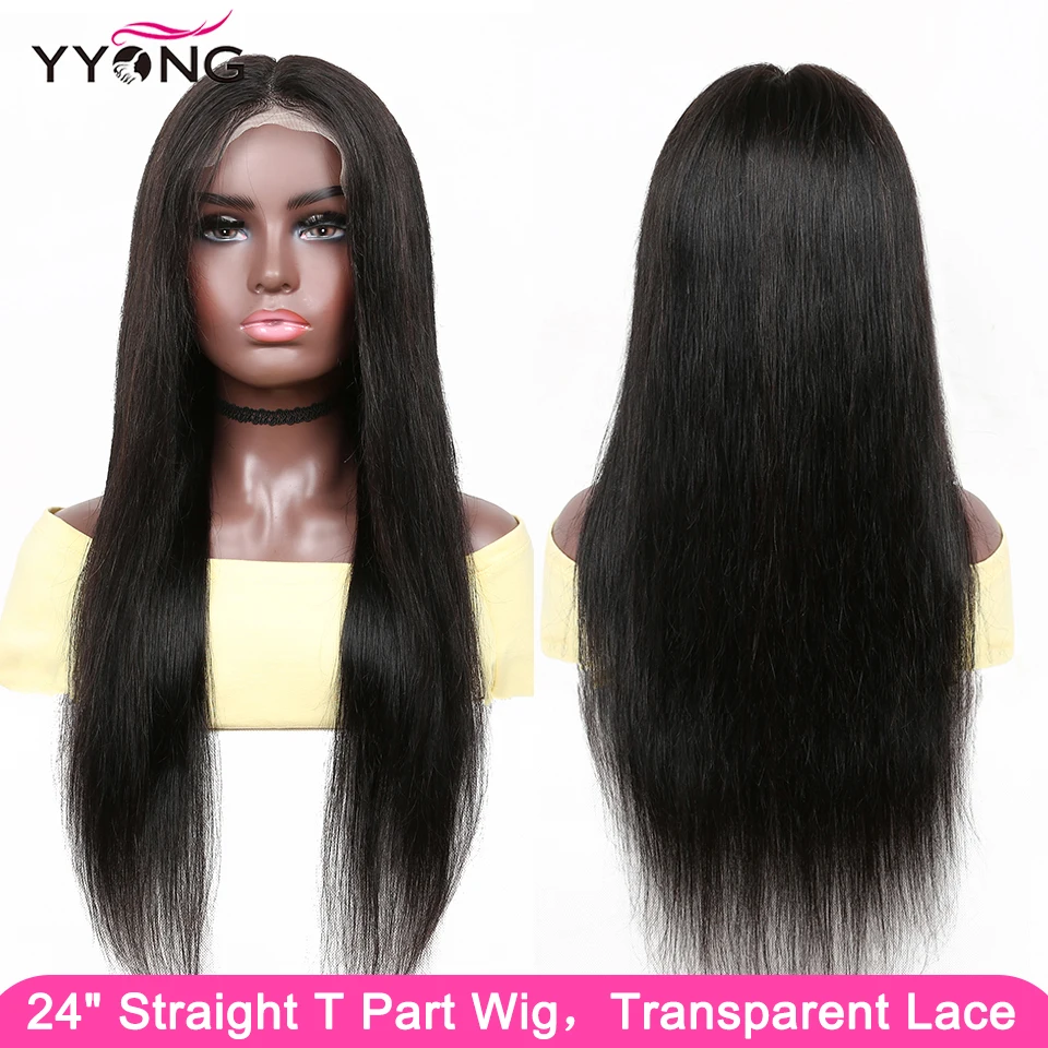 YYong 180% 13X1 T парик с глубокой кружевной частью, прозрачные парики на сетке, бразильские прямые человеческие волосы, парик для черных женщин, парик на сетке спереди