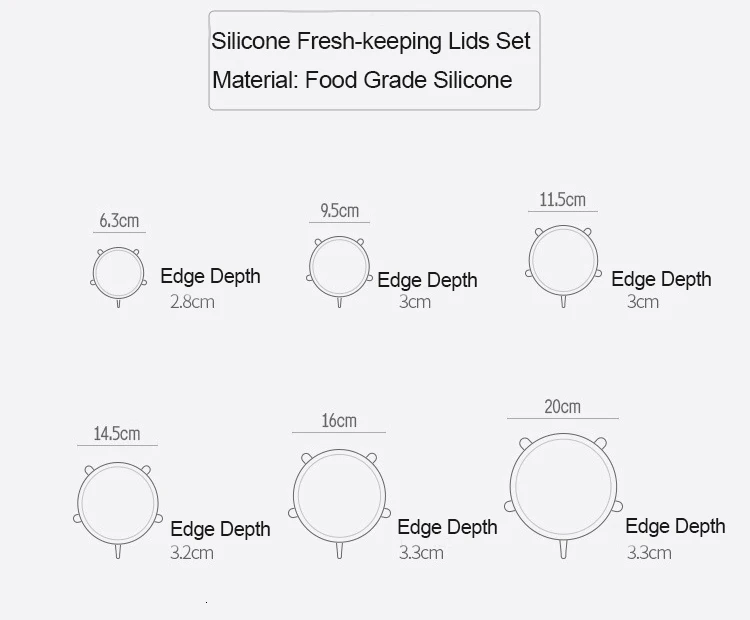 Крышки силиконовые многоразовые, 2,6-8,1 дюйма, 6 шт.