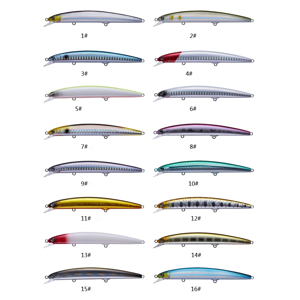 Модель Длина Вес Глубина Крюк S-115F 115 мм 13 г 0,8-1m 3X 4 # S-125F 125 мм 17 г 0,8-1m 3X 6 # S-140F 140 мм 21 г 0,8-1m 3X 8 #Демонстрация товара