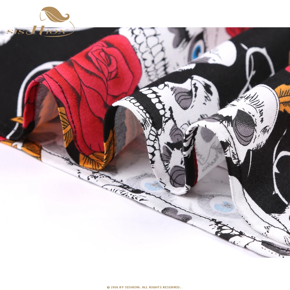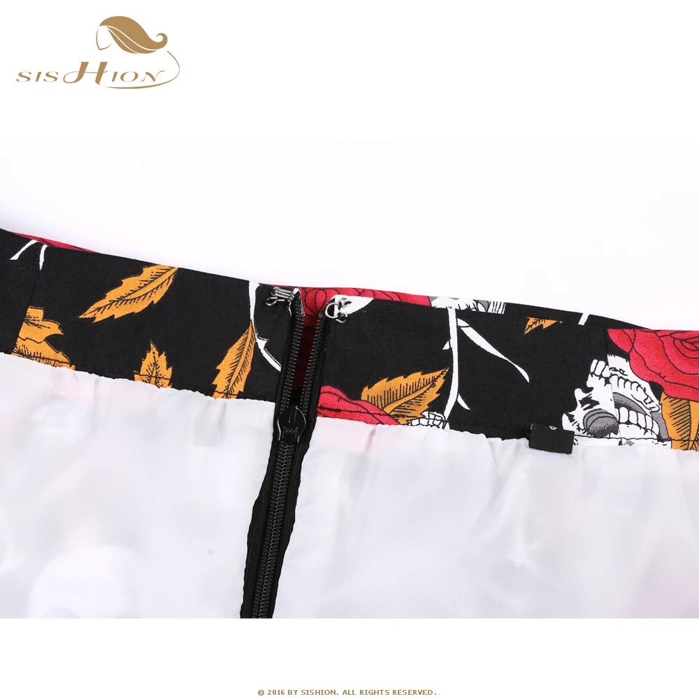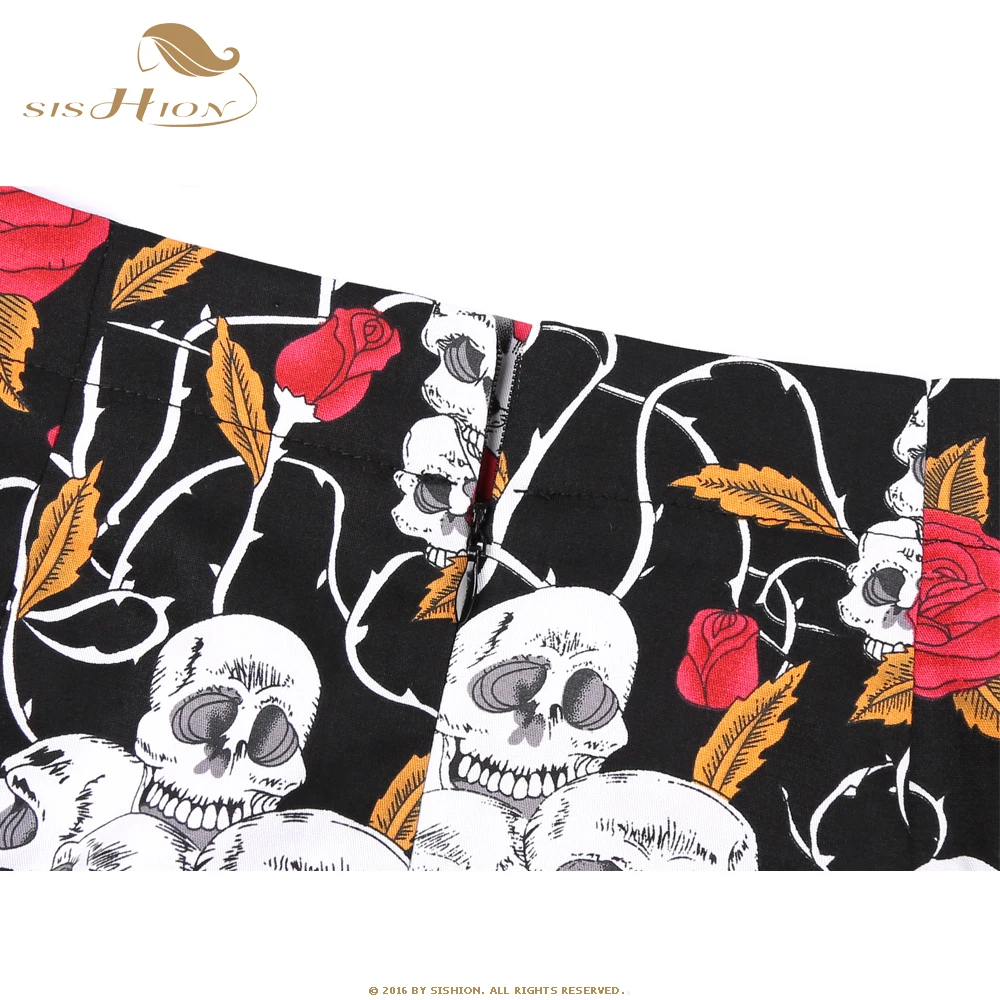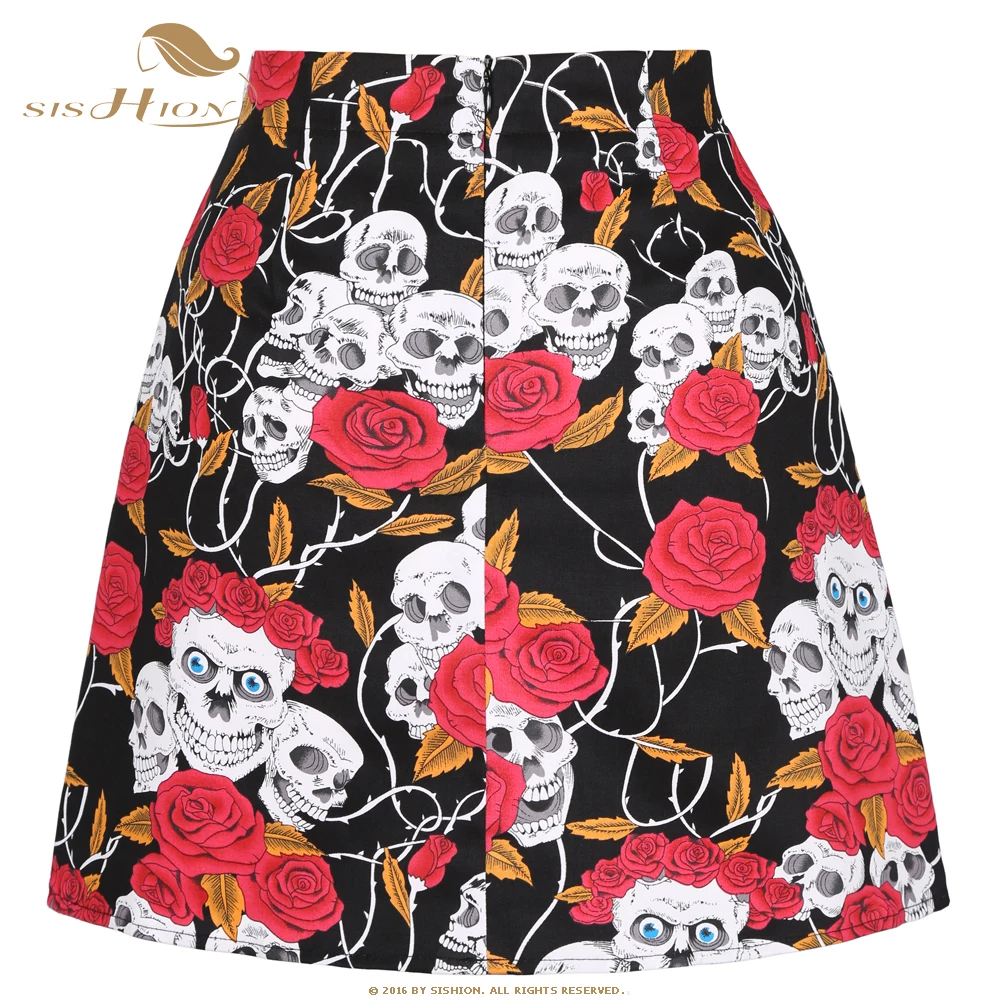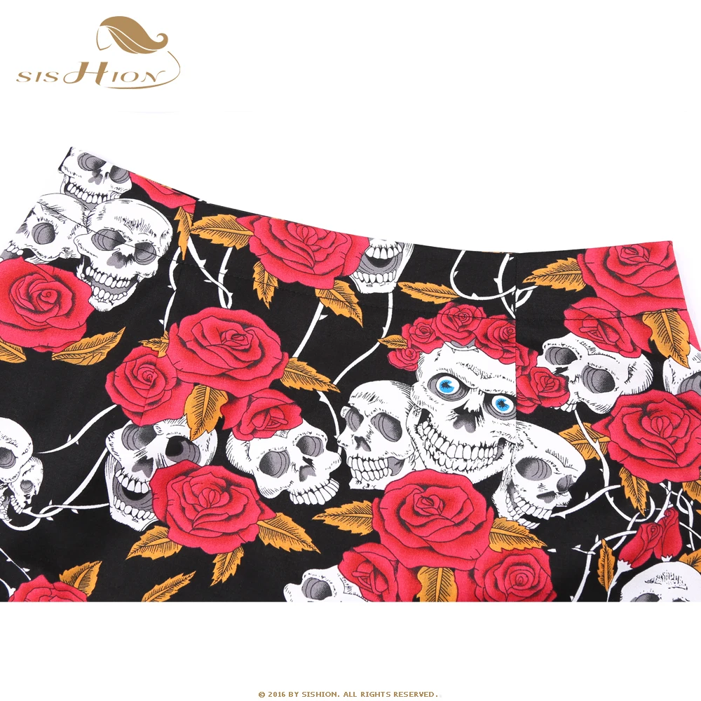 Женская короткая юбка SISHION, черная хлопковая мини-юбка с принтом в виде Розы и черепа, SS0008, для вечевечерние на Хэллоуин, в готическом стиле