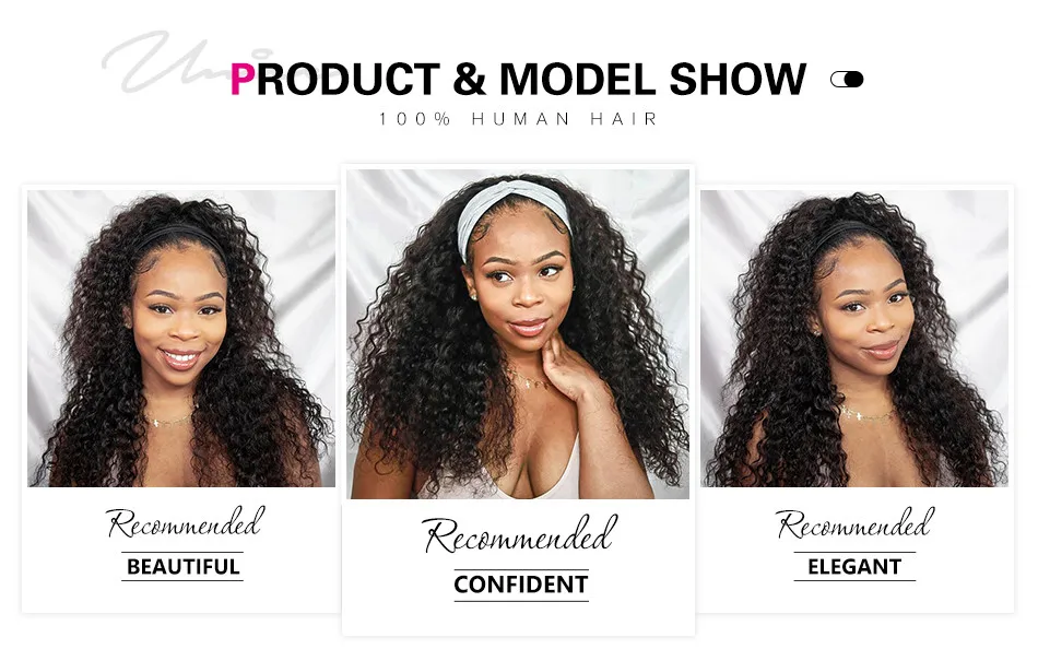 Recool глубокая волна парик с головной повязкой человеческие волосы...